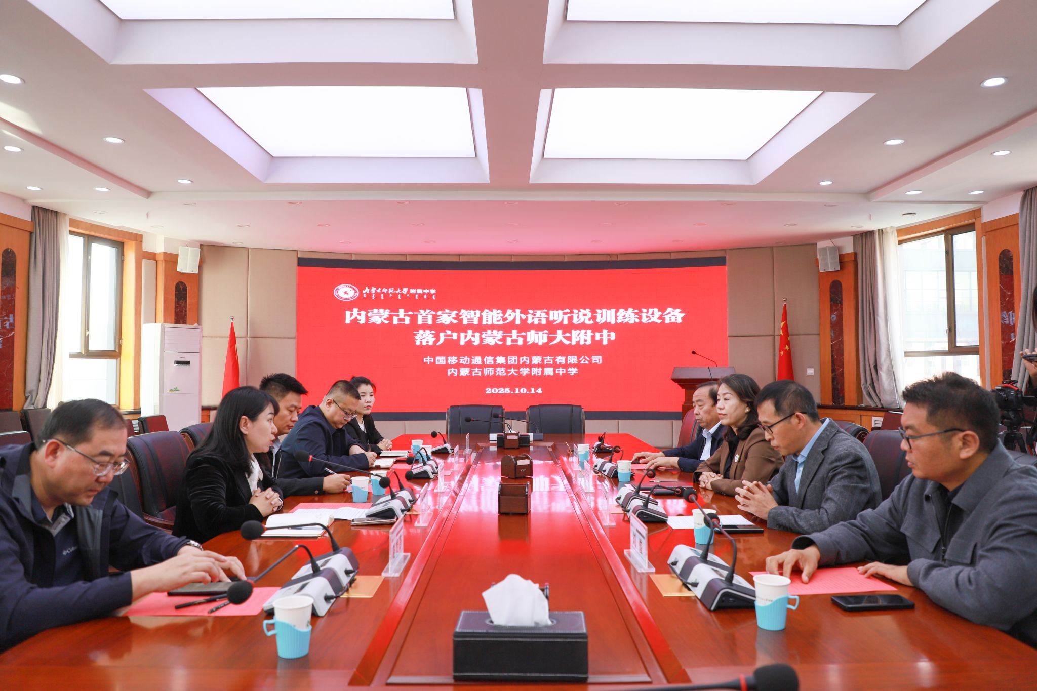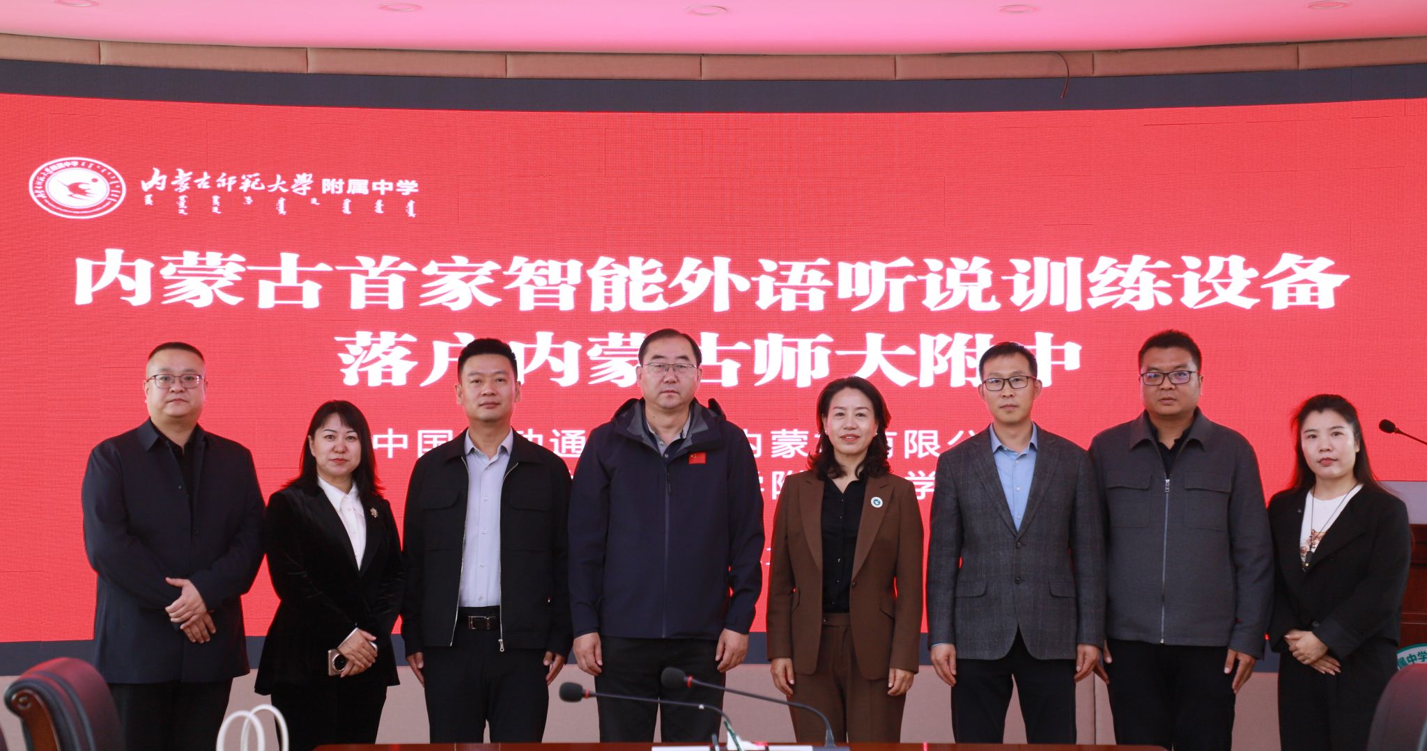 我校领导及相关负责人,中国移动内蒙古公司政企客户部教育行业总经理王一鸣、呼和浩特移动城区第二分公司总经理黄艳静,以及赛罕区教育招生考试中心主任赵怡静等共同出席仪式。