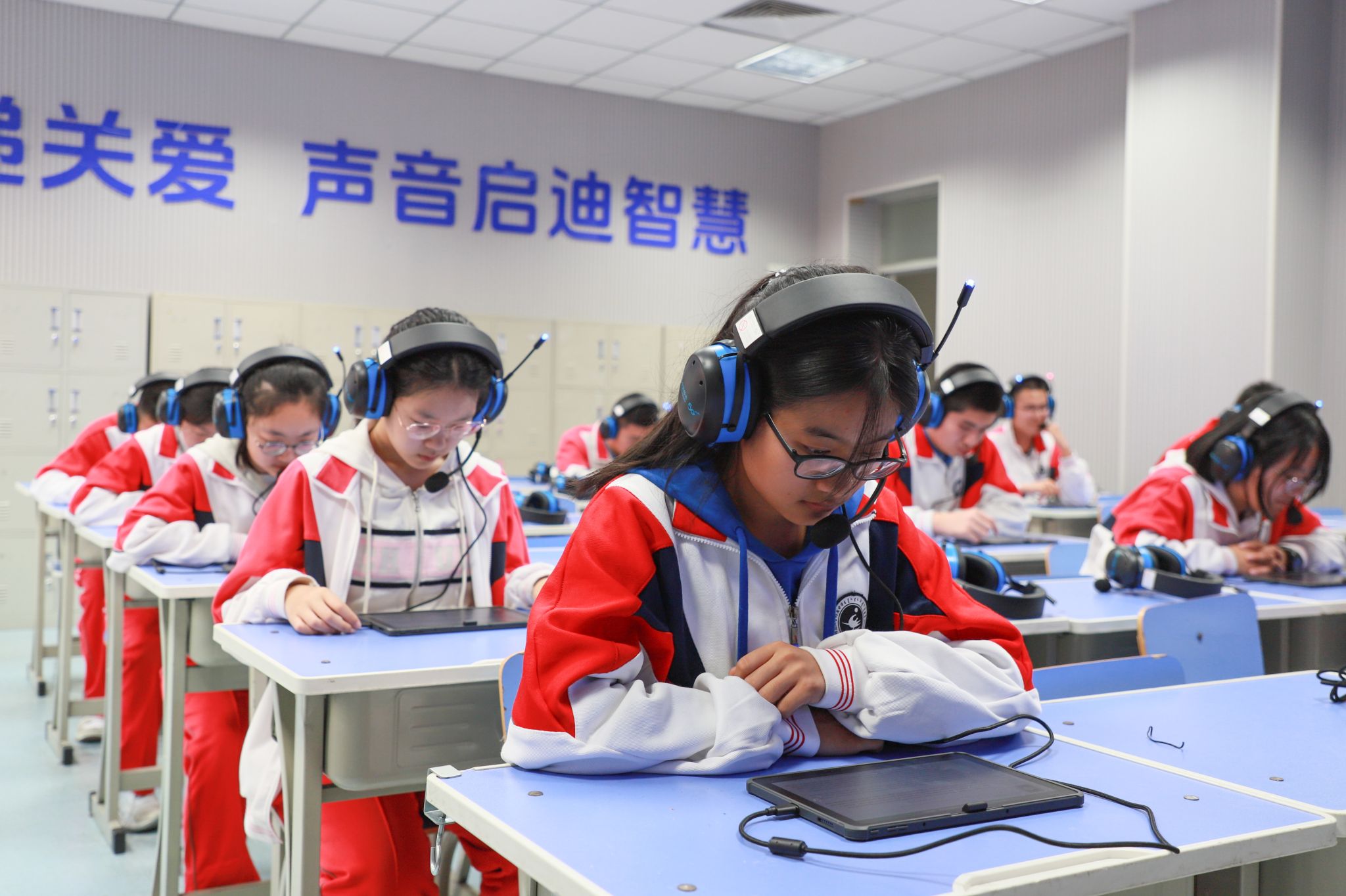 10月14日,“移动传递关爱·声音启迪智慧”智能外语听说训练设备启用仪式在内蒙古师大附中成功举行。这标志着内蒙古自治区首家智能外语听说训练系统正式投入使用,并率先在我校开展教学应用。