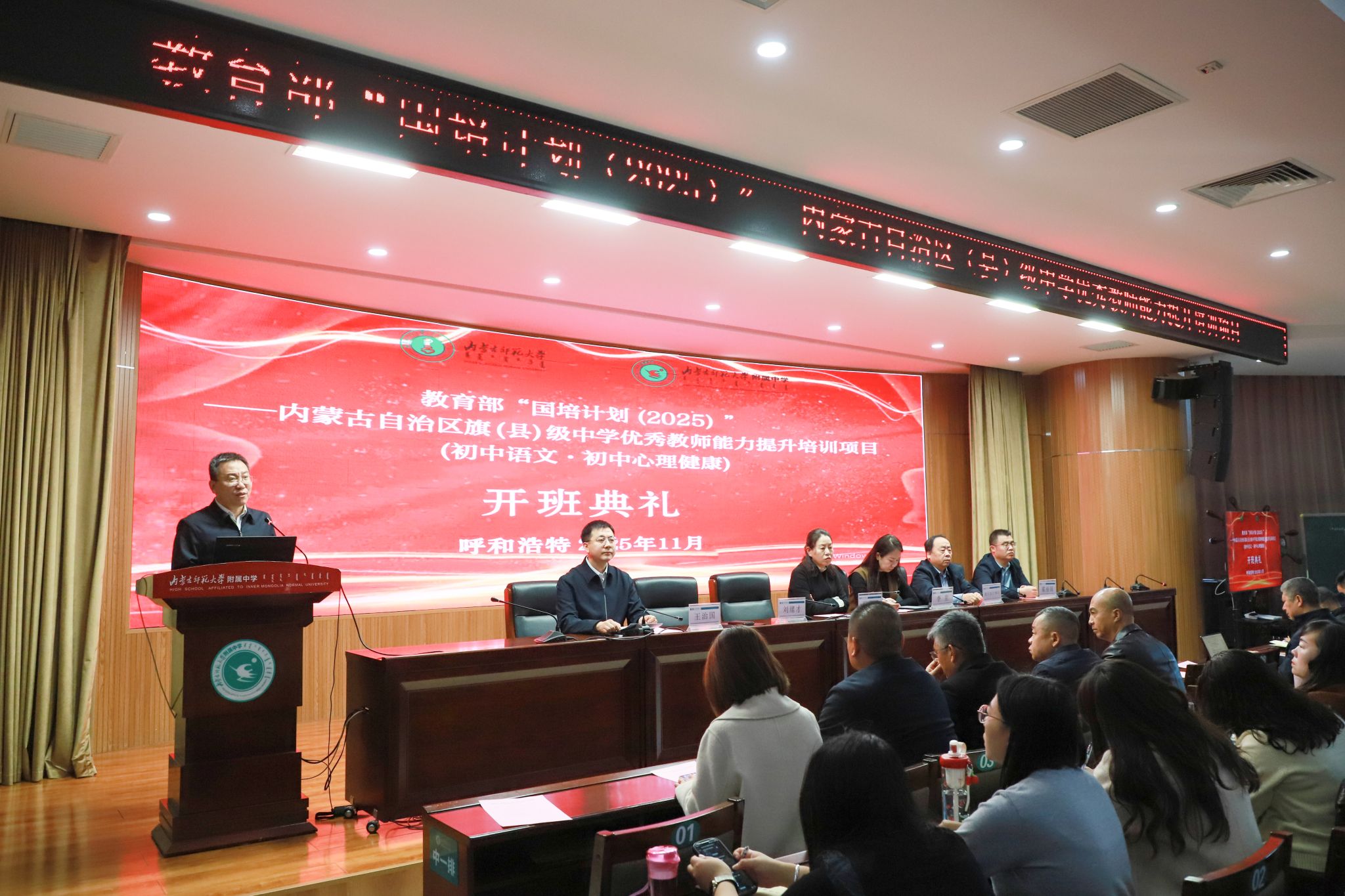 11月2日,由我校承办的“国培计划(2025)”——内蒙古自治区旗(县)级中学优秀教师能力提升培训项目初中语文、心理健康学科培训开班。内蒙古师范大学法规与政策研究中心负责人李里、我校及兄弟学校领导出席,来自自治区各盟市的98名学员相聚,开启为期17天的培训学习活动。