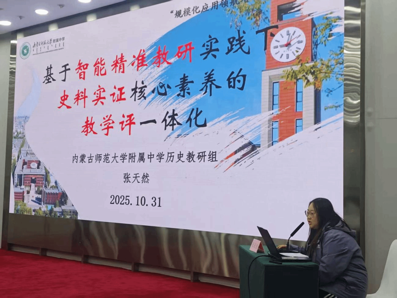 10月30日至31日,全市智能研修平台应用培训暨精准教研优秀案例展示活动在呼和浩特青城大酒店举行。我校积极响应,三位教师在培育校案例分享环节中进行了线下精彩汇报,充分展示了附中在智能研修活动中的精准教研实践成果。