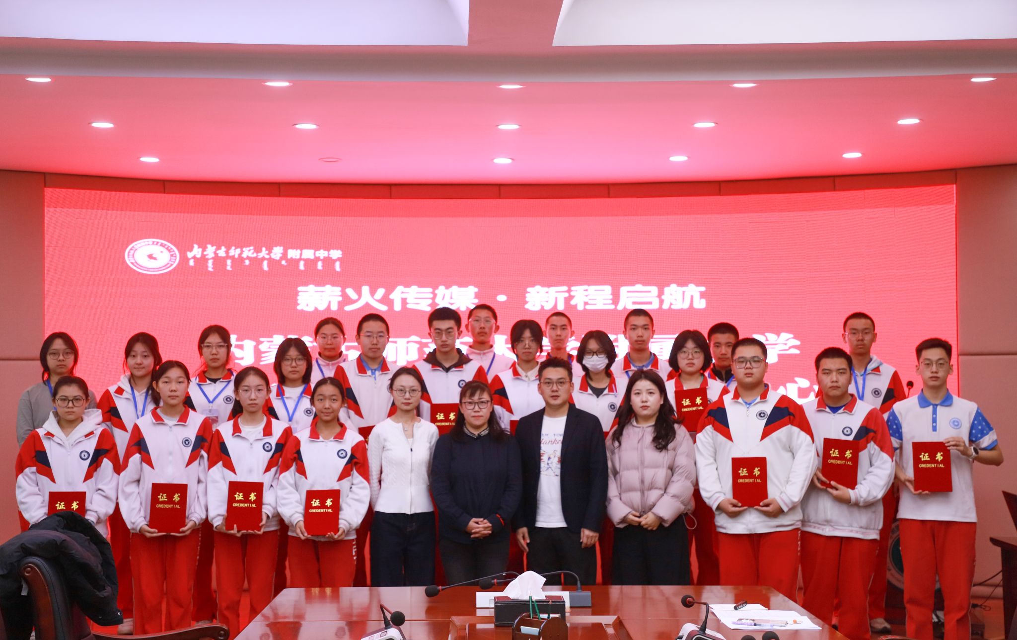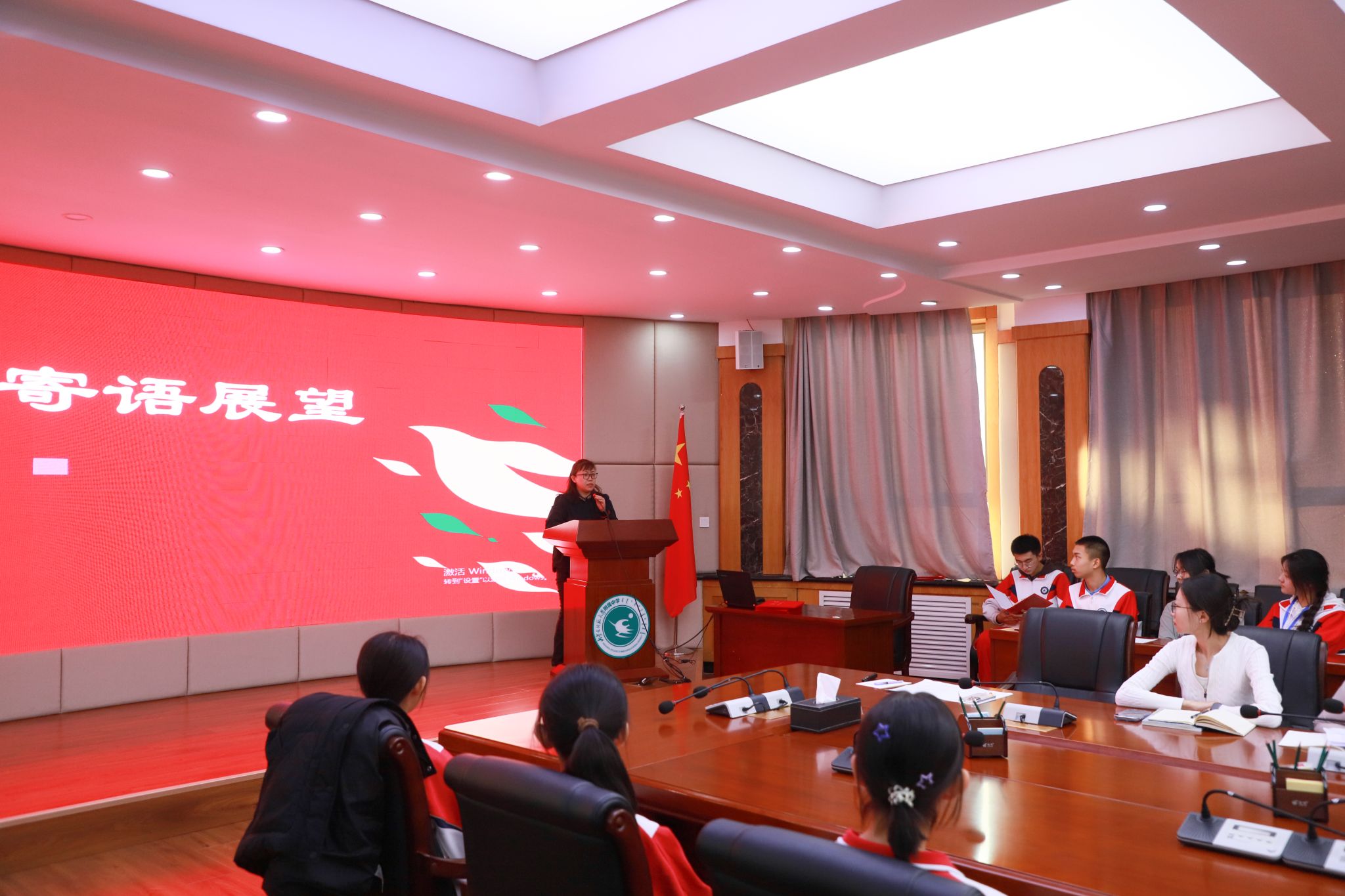 “薪火交接”——指导教师为新一届成员颁发任命证书,明确岗位分工;为他们颁发工作证,标志着他们正式成为“哈林鸟”的中坚力量。新一届负责人代表刘屹涵则分享了未来的工作规划与奋进决心,展现出新一代融媒人的活力与担当。指导教师郭璇在“寄语展望”环节讲话。她对“哈林鸟”融媒体中心过去的工作成果给予充分肯定,向高三成员的无私奉献表达感谢,同时对新一届团队提出殷切期望。