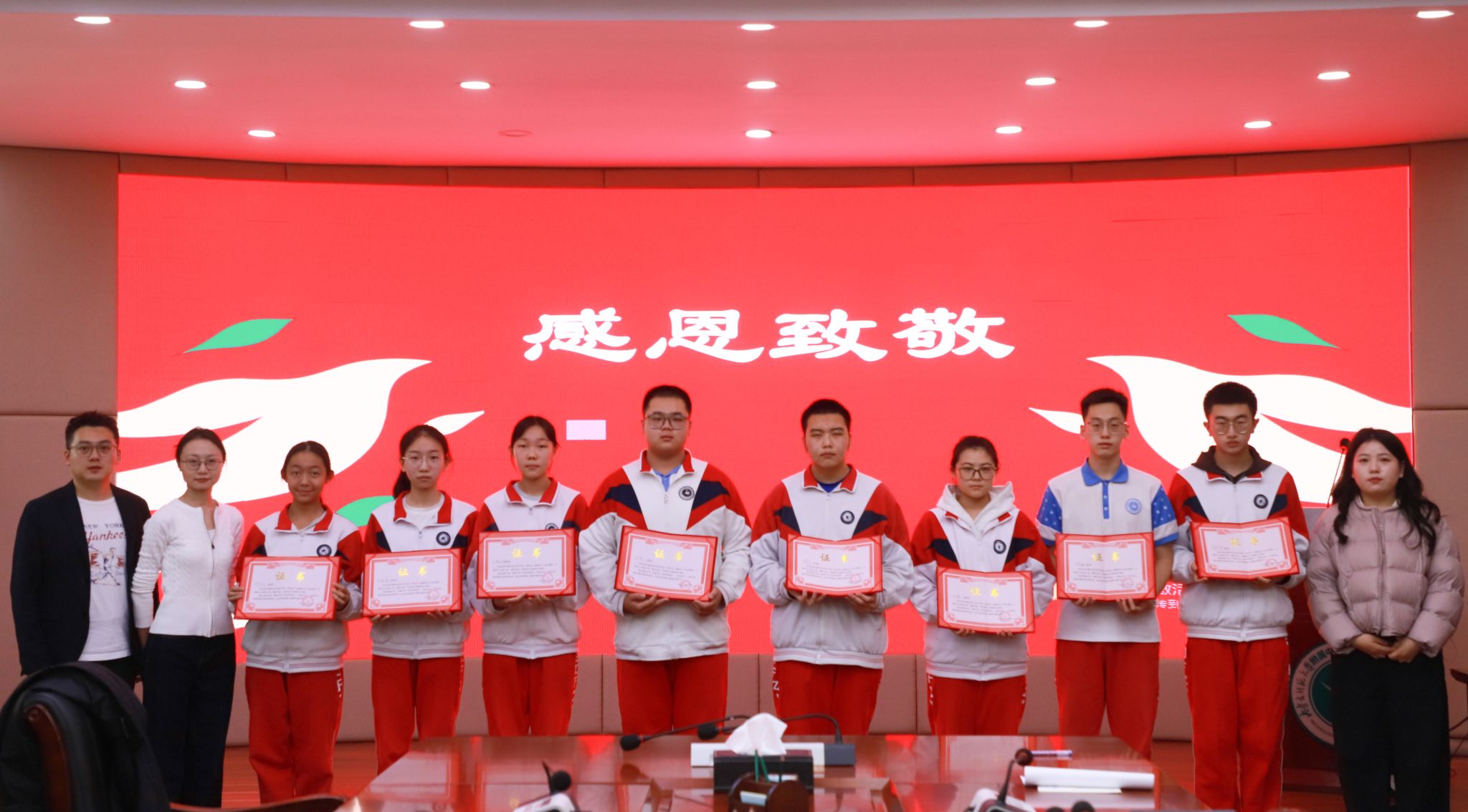在“感恩致敬”环节,大家对即将退会的高三成员表达崇高敬意。过去一年,他们以文字记录校园点滴,用镜头定格青春瞬间,用创意点亮社团生活,为融媒体中心的发展奠定了坚实基础。指导老师为他们颁发“优秀贡献纪念证书”。高三退会成员代表张艺博的发言,回顾了在社团的成长与收获,充满不舍与期许。
