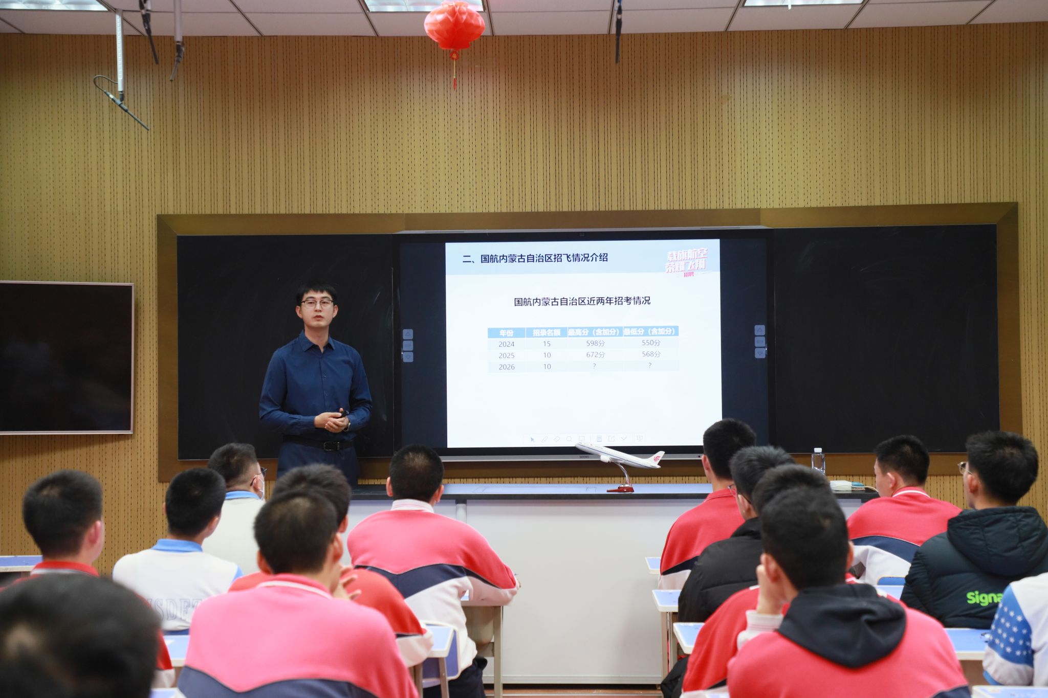 各高校招生负责人围绕办学特色、优势学科、2026年招生计划、录取规则等核心内容展开详细讲解,结合往年录取数据为学生分析报考方向。国航招飞团队则现场说明招飞条件、选拔流程及培养体系,并为有意愿的学生进行初步检测。