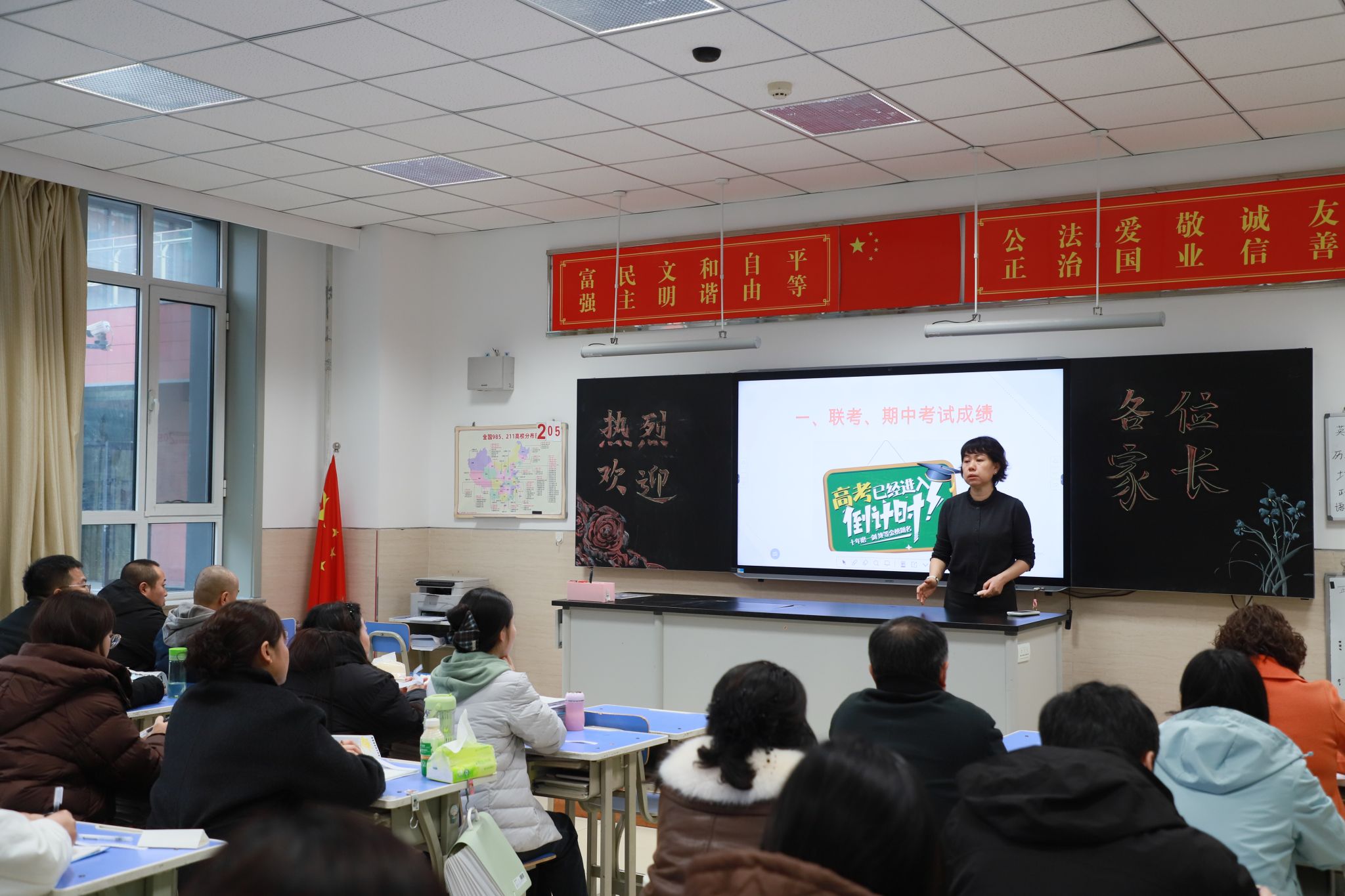 高三年级在美育中心大礼堂举办生涯规划专题讲座,全体家长参会。专家围绕升学方向、职业探索等核心内容,为家长提供专业指导,助力精准把握学生生涯规划重点,为孩子锚定成长目标。讲座结束后,各班接续召开家长会,班主任与科任教师结合日常教学情况,细致反馈学生课堂状态、作业质量、学科优势及提升空间,量身定制冲刺阶段学习建议。