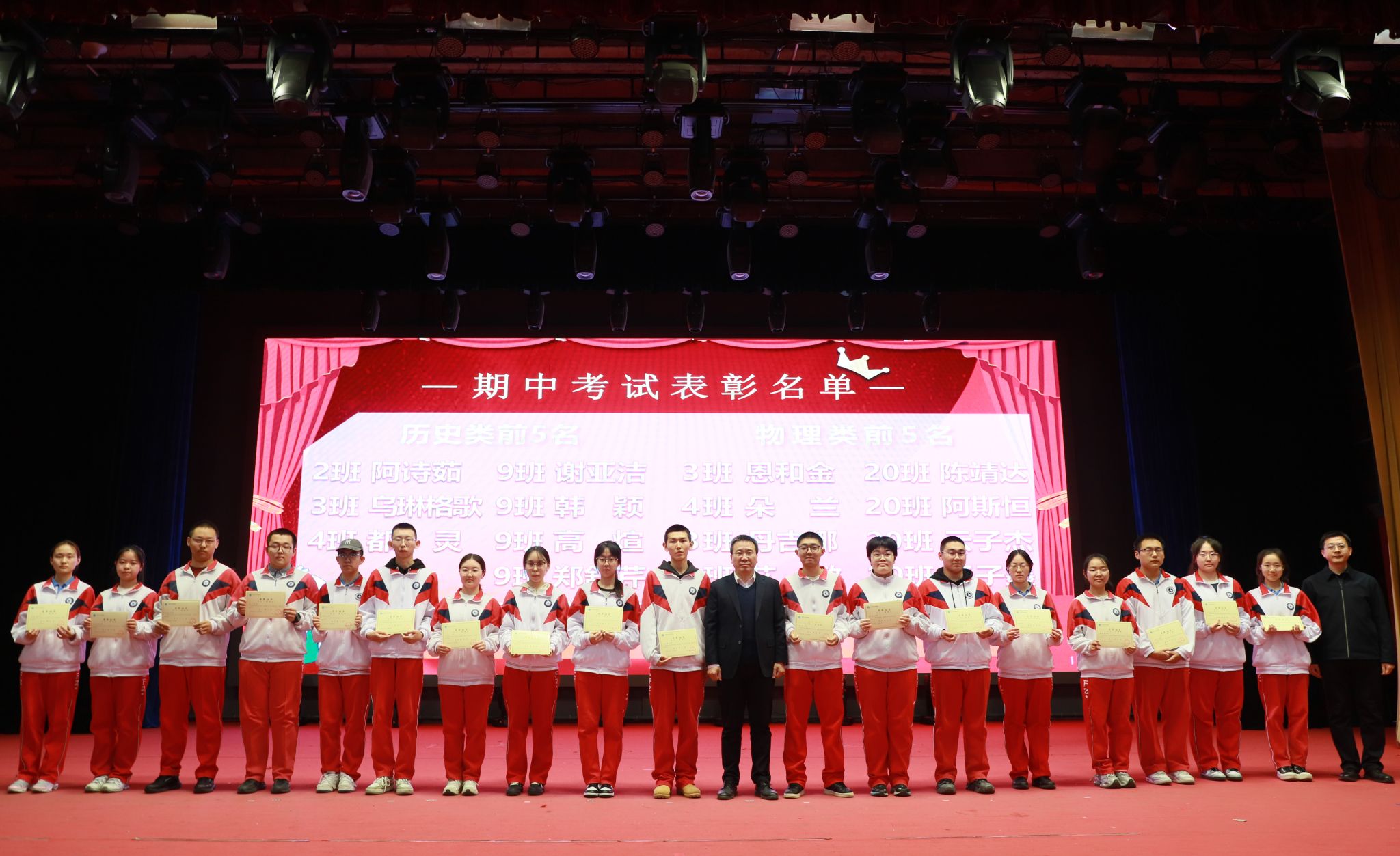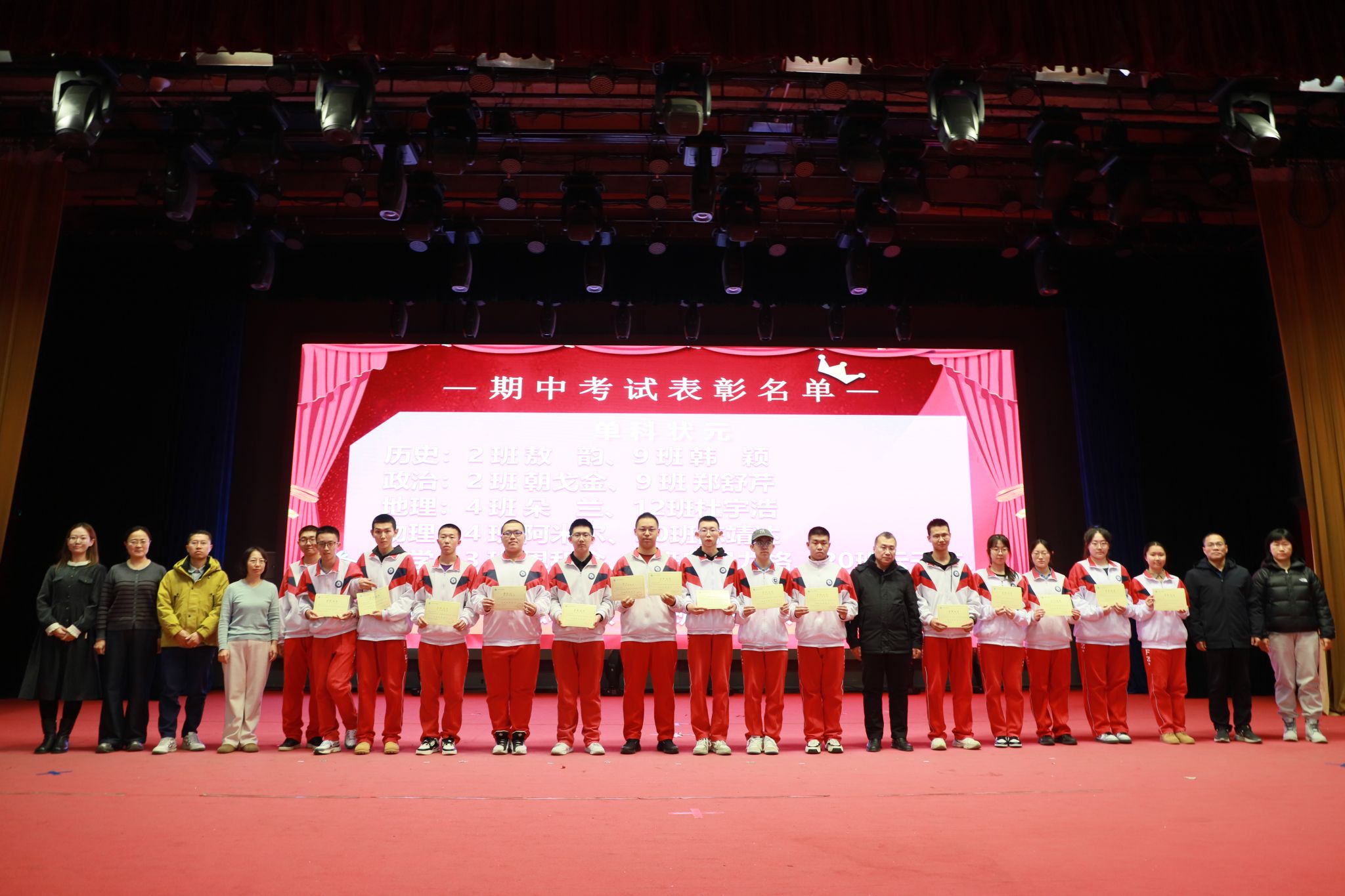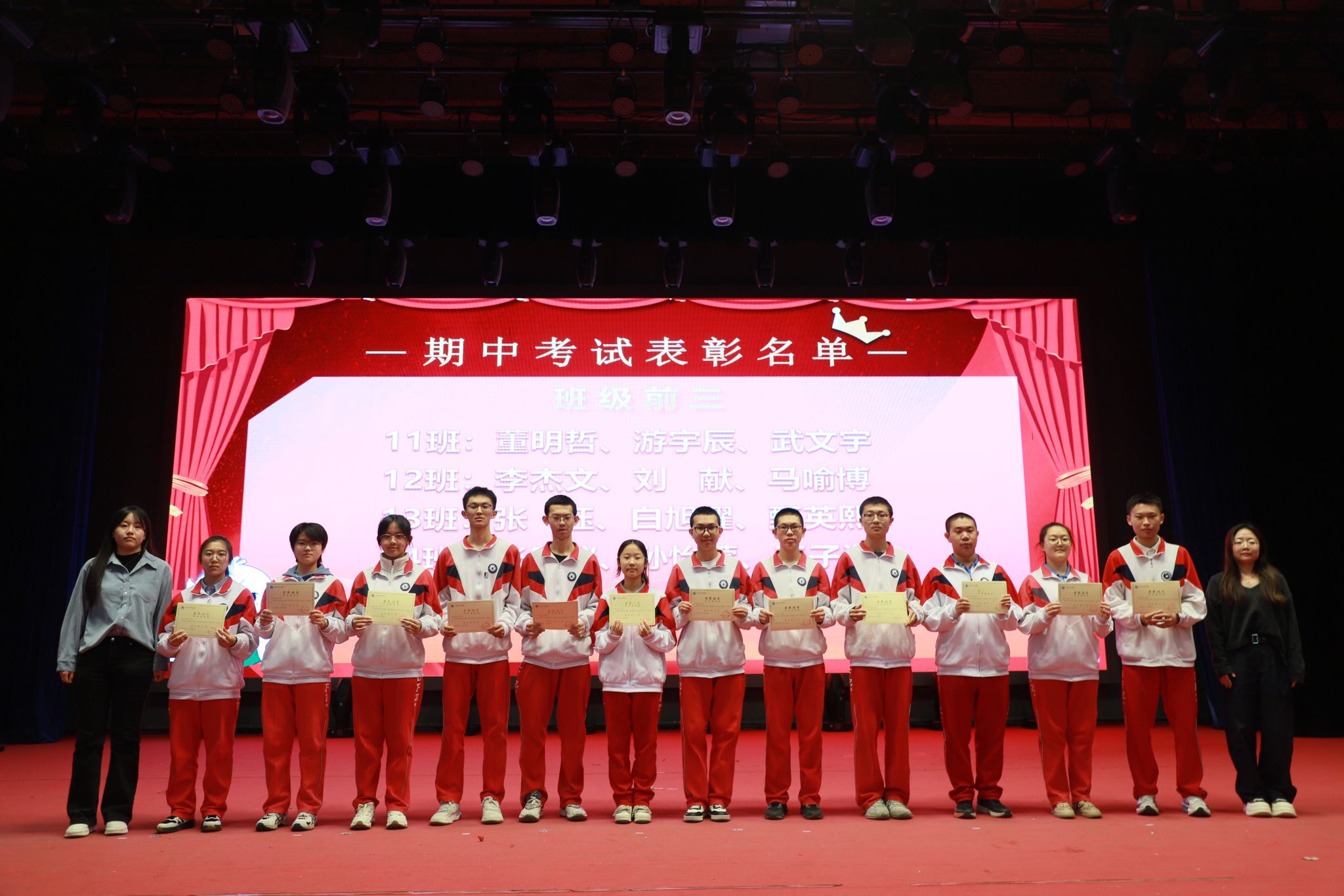 大会现场氛围热烈,环节紧凑有力。暖场视频点燃青春热忱;期中考试表现突出的同学和“语文报杯”获奖的同学受到表彰,榜样力量催人奋进;学霸分享实用备考方法论,干货满满助力高效冲刺;全体教师温情鼓劲、答疑解惑,用责任与专业为学子护航;优秀毕业生云端送福,传递过来人的祝福与力量;高三学子写好对未来的寄语,送上对老师的感谢,师生互信,迈向卓越。最后,全场齐唱《我的天空》,将大会氛围推向高潮。