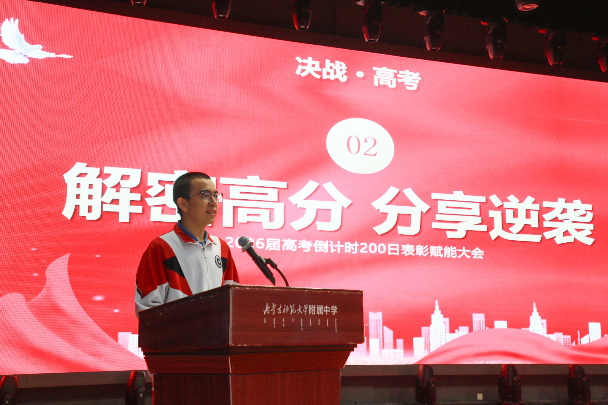 校领导激励高三学子将梦想冲刺的200天倒计时,化作青春拼搏的加速器。我校有优秀的资源配置、顶尖的教研团队、全方位的保障体系,为逐梦之路保驾护航;高三教师团队同心聚力,领航备考征程;高三学子按照复习规划,目光坚定、步履铿锵奔赴高考。