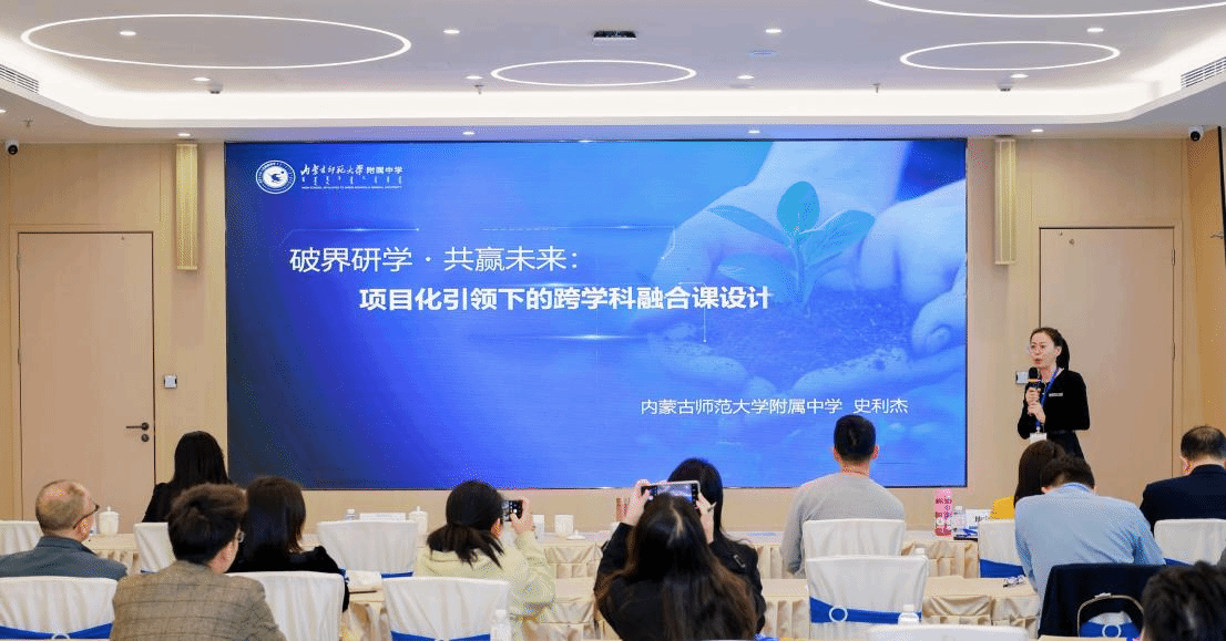 我校教师史利杰还参与了大会路演活动,她从基础教育视角向AI行业精英、高校教授等介绍了我校的历史与教育理念,展现了内蒙古师大附中创新与务实的风格。