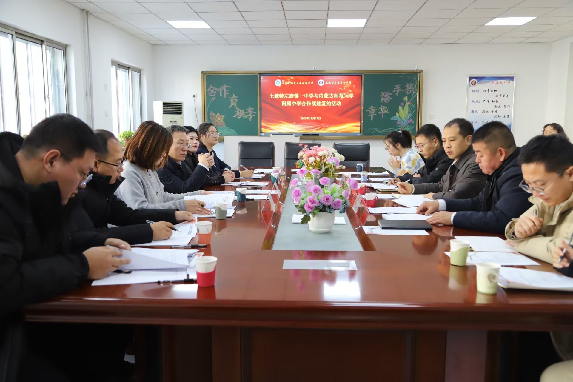 12月17日,内蒙古师范大学附属中学与土默特左旗第一中学合作续建签约仪式在土默特左旗第一中学顺利举行。双方领导及教师代表出席。