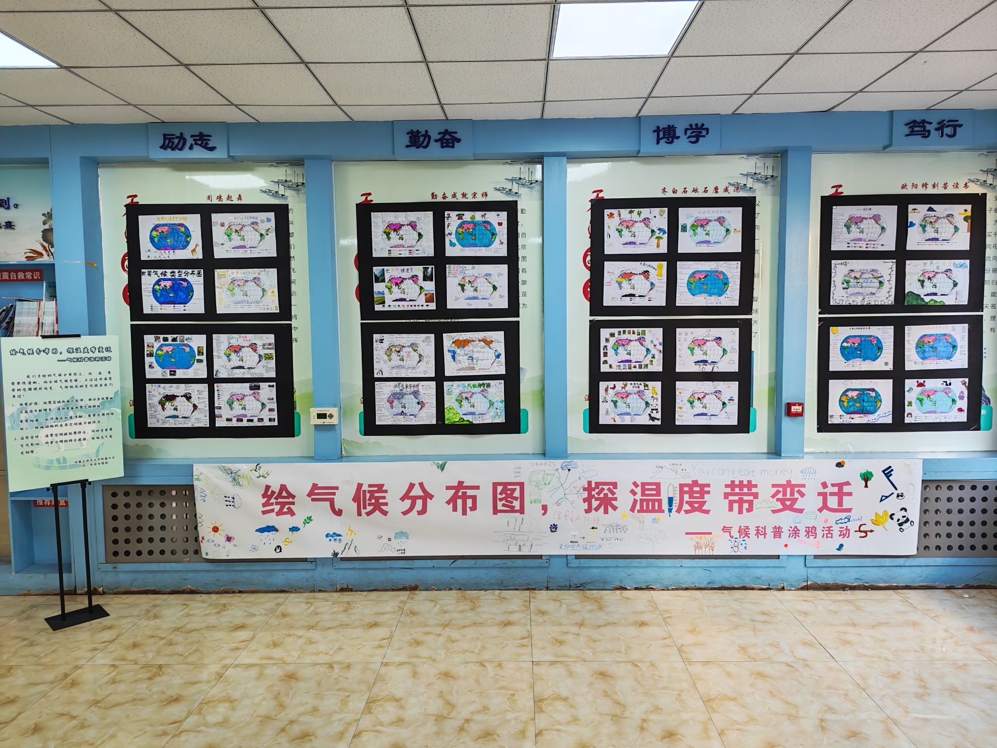 赤道的深红、极地的淡蓝、季风区的草绿……这不是专业气象图,而是一群初一学生亲手绘制的世界气候分布图。为了更深入学习《世界的气候》相关知识,了解世界各气候类型的分布,感受气候对当地景观的影响,我校初一地理组开展了主题为“绘气候分布图,探温度带变迁”的地理特色作业活动。