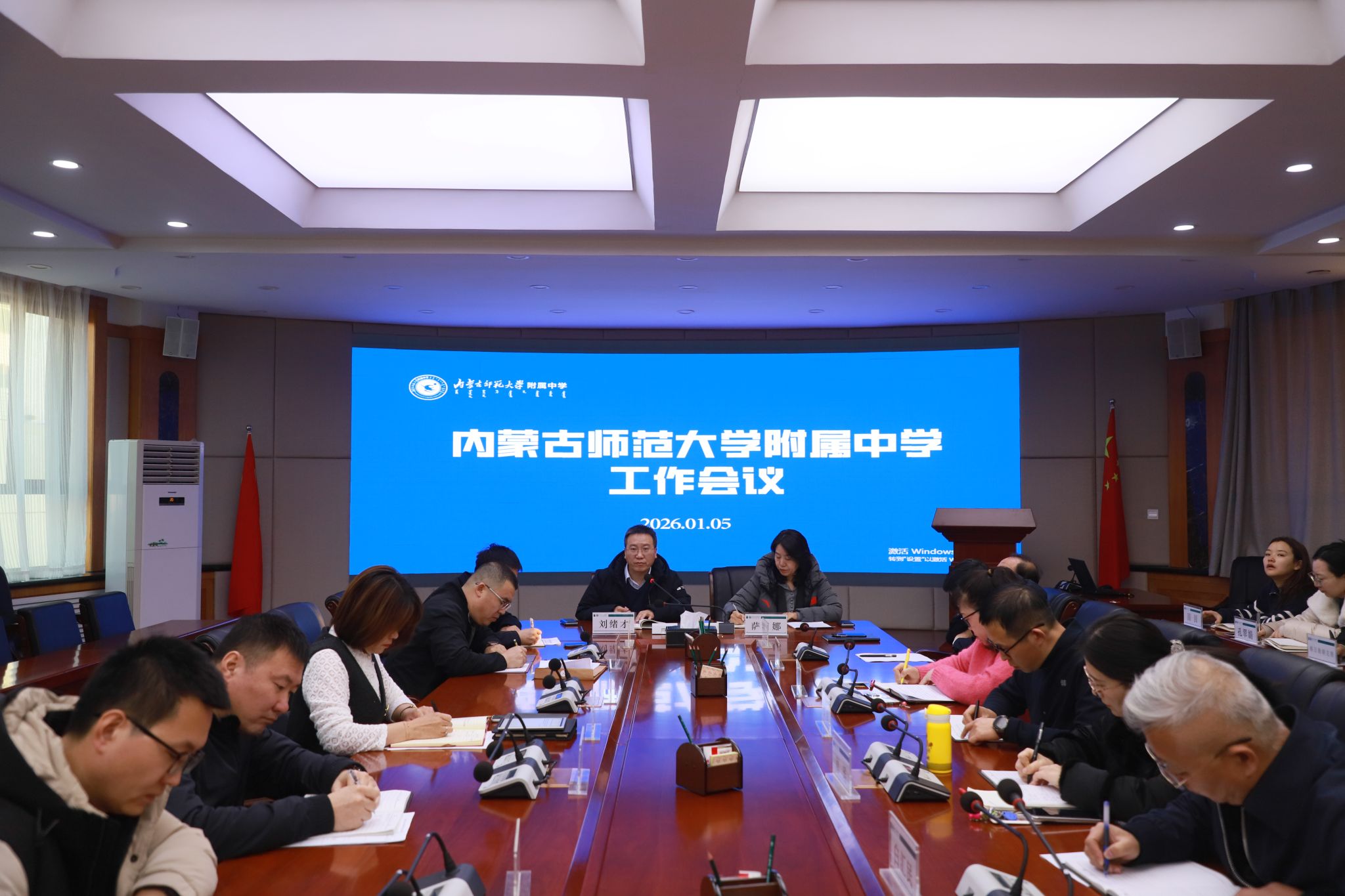 1月5日,内蒙古师大附中召开工作会议,围绕“结好账、收好尾、谋好局”三个方面,对寒假前各项工作进行统筹安排。相关校领导、环节干部、年级主任参会。针对学期末关键阶段,会议要求:要持续开展校园安全、交通安全与思想教育,加强教职工宿舍、实验室等重点区域管理;严格落实复习、考试组织与阅卷工作流程,维护教学秩序稳定,确保教学与考试各环节严谨规范;认真执行值班巡查制度,做好学生在校期间的安全保障与服务;加强财务收支管理,确保信息准确清晰;加强后勤检修与环境维护,营造安定有序的校园氛围。