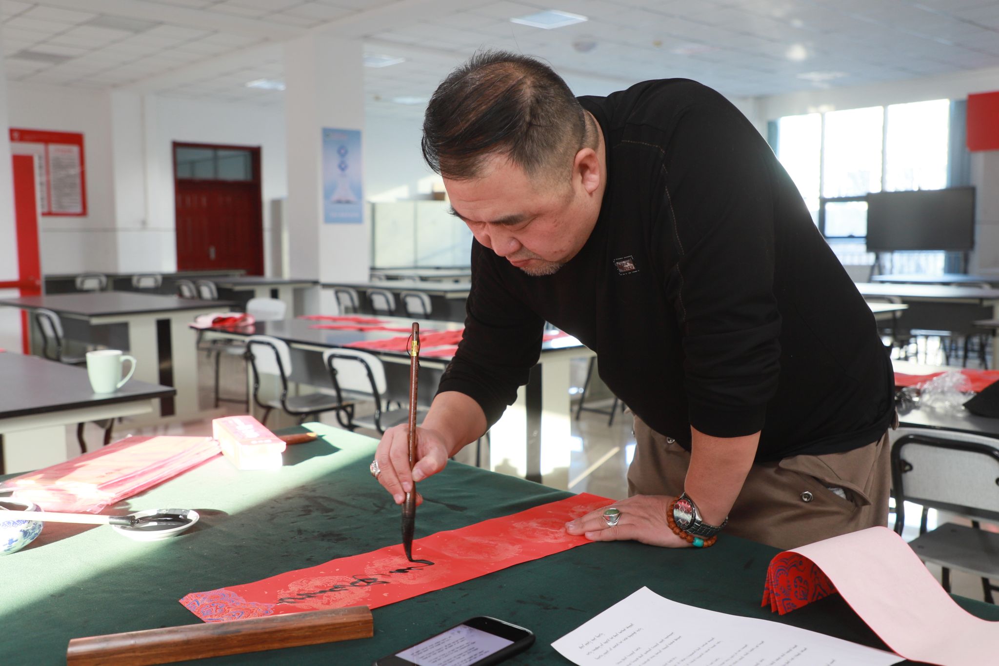 活动现场墨香弥漫、洋溢着浓厚的喜庆氛围。教职工们既可以免费领取书法家现场创作的新春佳作,也可以提前准备好心仪的祝福语,让书法家量身定制专属作品。部分书法老师还特意为赴锡林浩特二中授课的教师题写春联,以笔墨寄托情谊,送上新春的美好祝愿。
