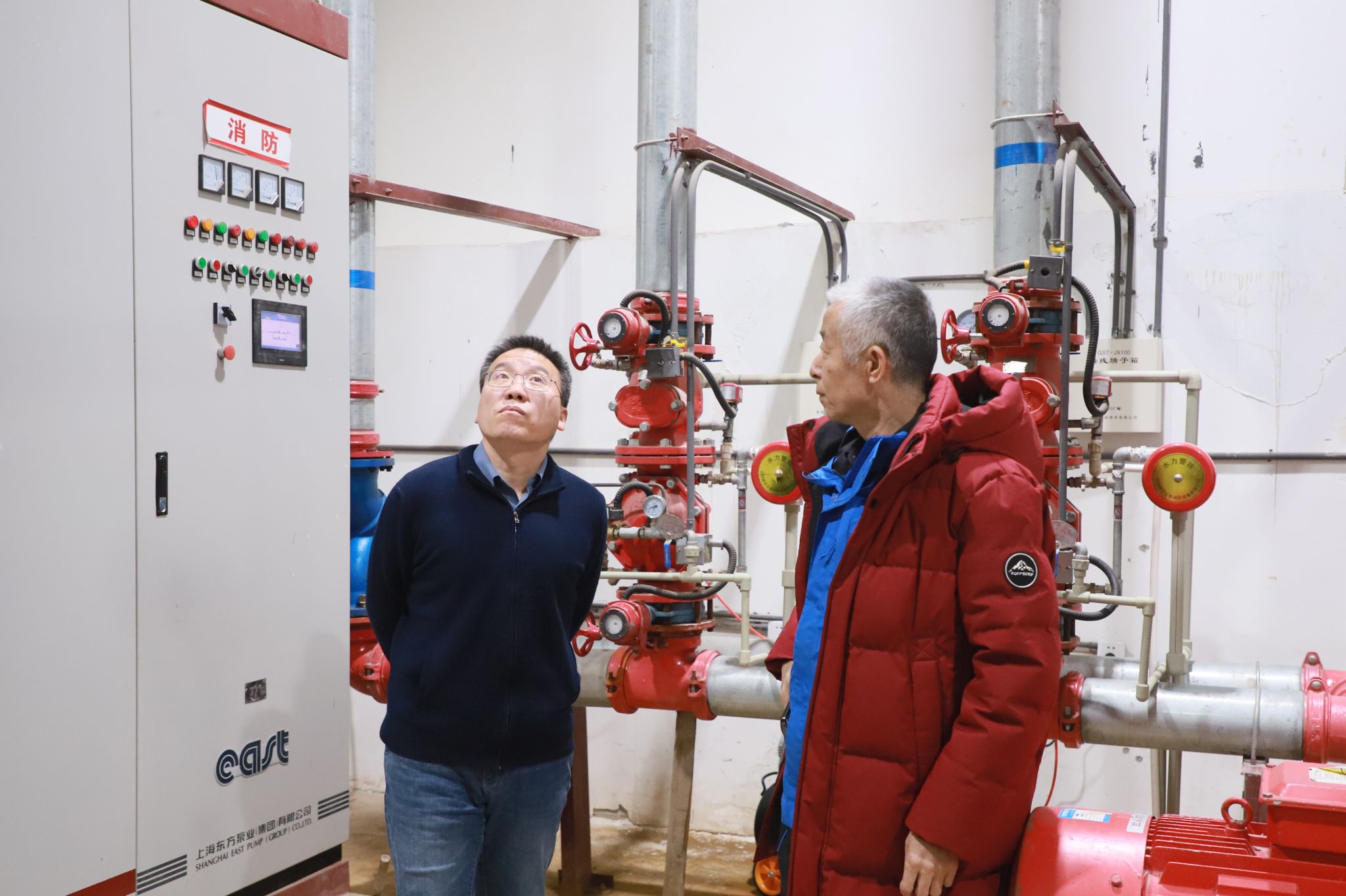 检查组一行先后深入校园加压泵房、消防泵房、消防控制室、高压配电室等重点保障场所,对设备运行状态、维护记录进行了实地查看。同时,检查组还走访了食堂周边及教师公寓等人员密集区域,对消防安全、用水用电规范及环境卫生情况进行了排查。