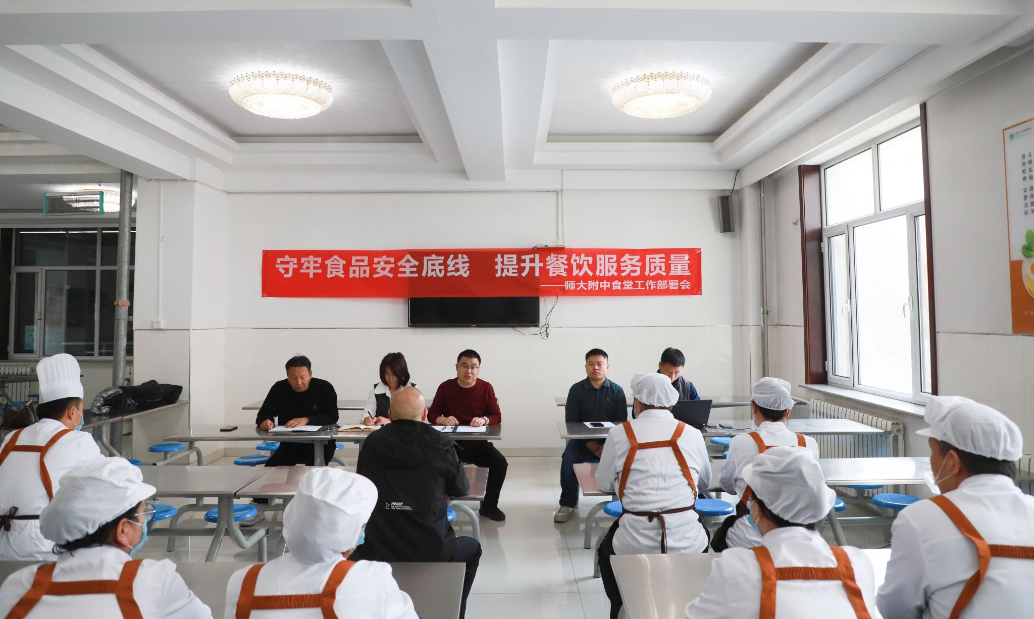 我校于3月1日召开食堂工作部署会议,校领导出席,食堂全体工作人员参加。