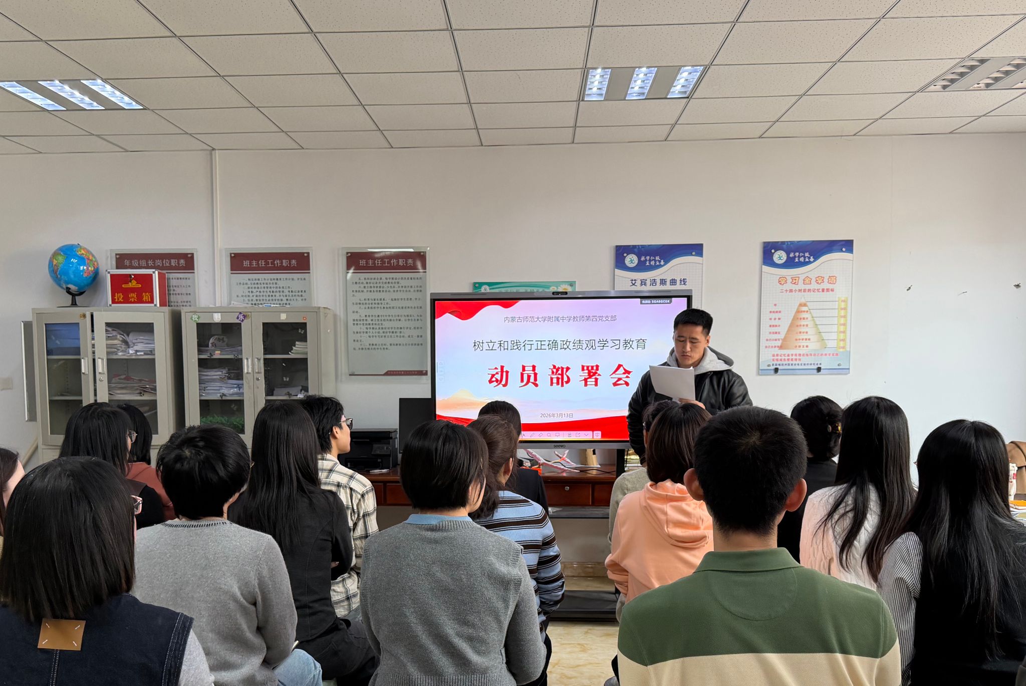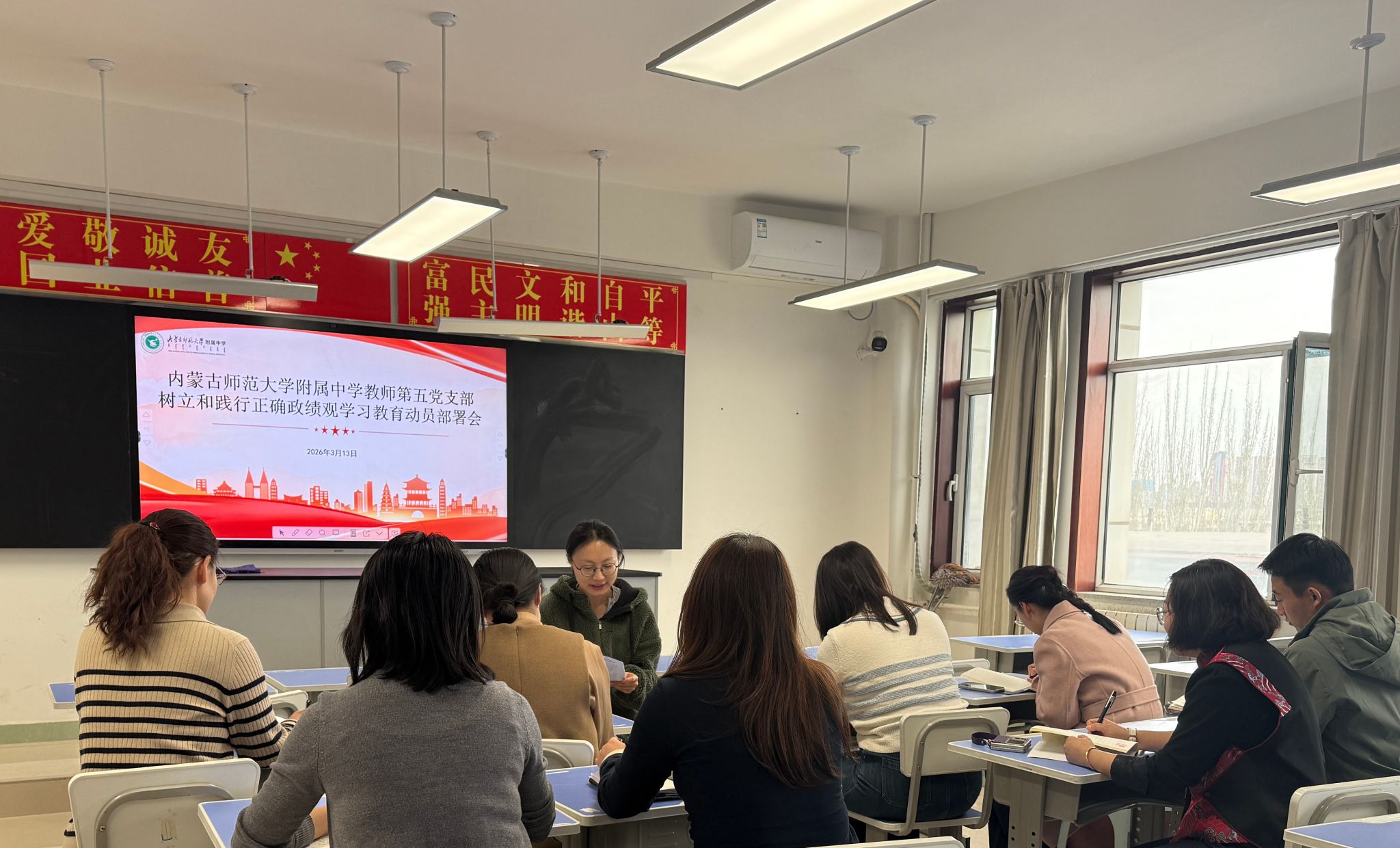 各党支部严格按照校党委树立和践行正确政绩观学习教育专题部署会议精神,通过支部党员大会,精准传达校党委工作要求,详细解读《内蒙古师范大学附属中学党委关于树立和践行正确政绩观学习教育工作安排》,并结合支部工作实际,细化学习任务、明确推进路径、压实工作责任。