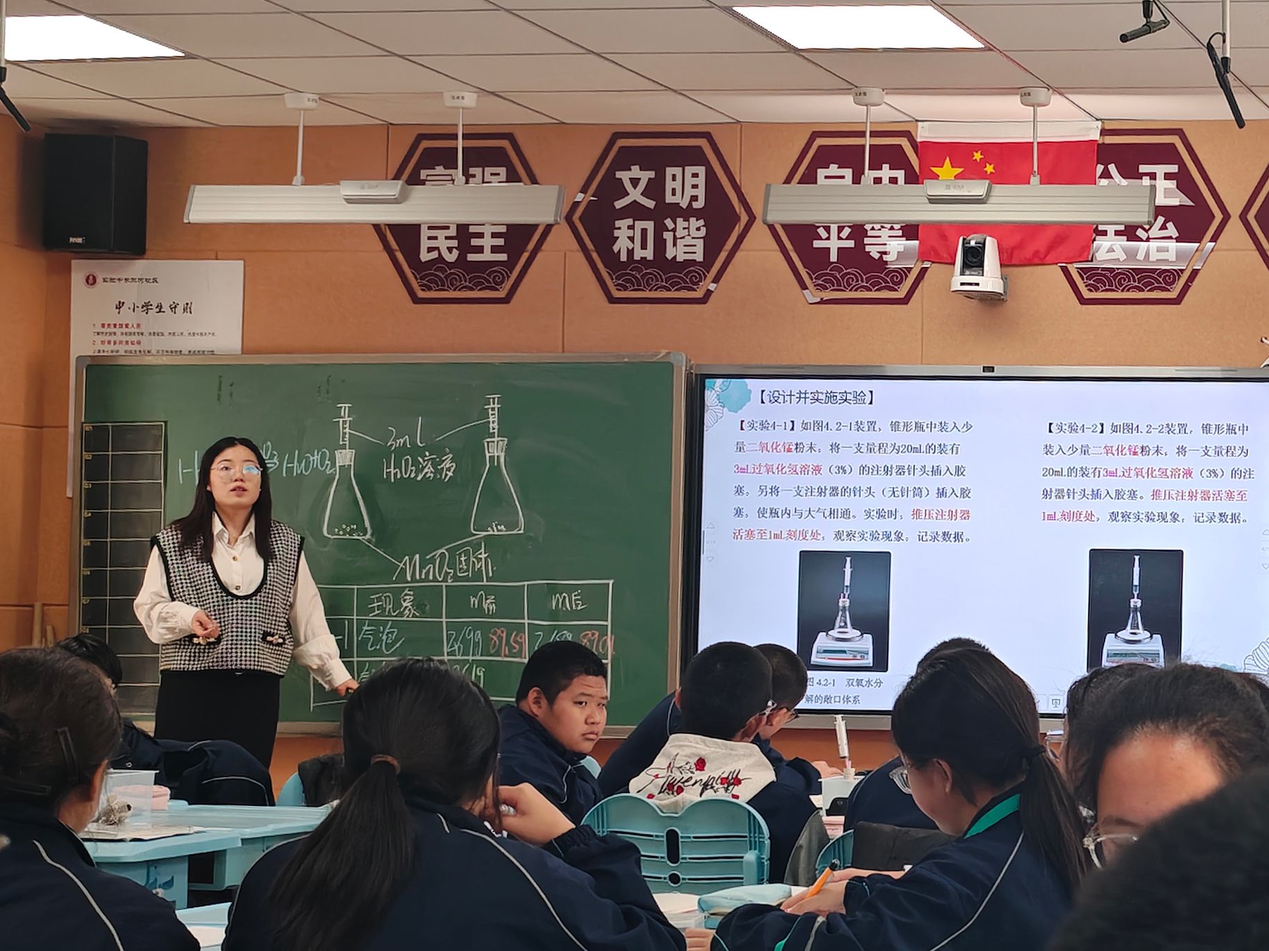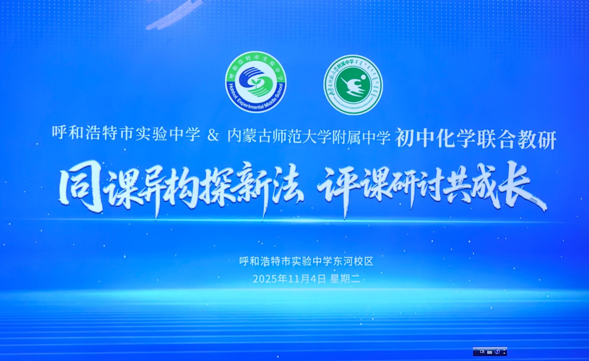 为深化新课标理念落地,促进教师专业化成长,实现优质教育资源共享,在学校领导的大力支持下,2025年11月4日,我校与呼和浩特市实验中学联合开展了以“同课异构探新法,评课研讨共成长”为主题的初中化学教学研讨活动,我校学初三化学备课组全体参与。活动还特邀内蒙古师范大学化学与环境科学学院王海燕教授、徐爱菊教授,实验中学总教研员高原老师,以及多位硕士研究生同学共同参与交流。