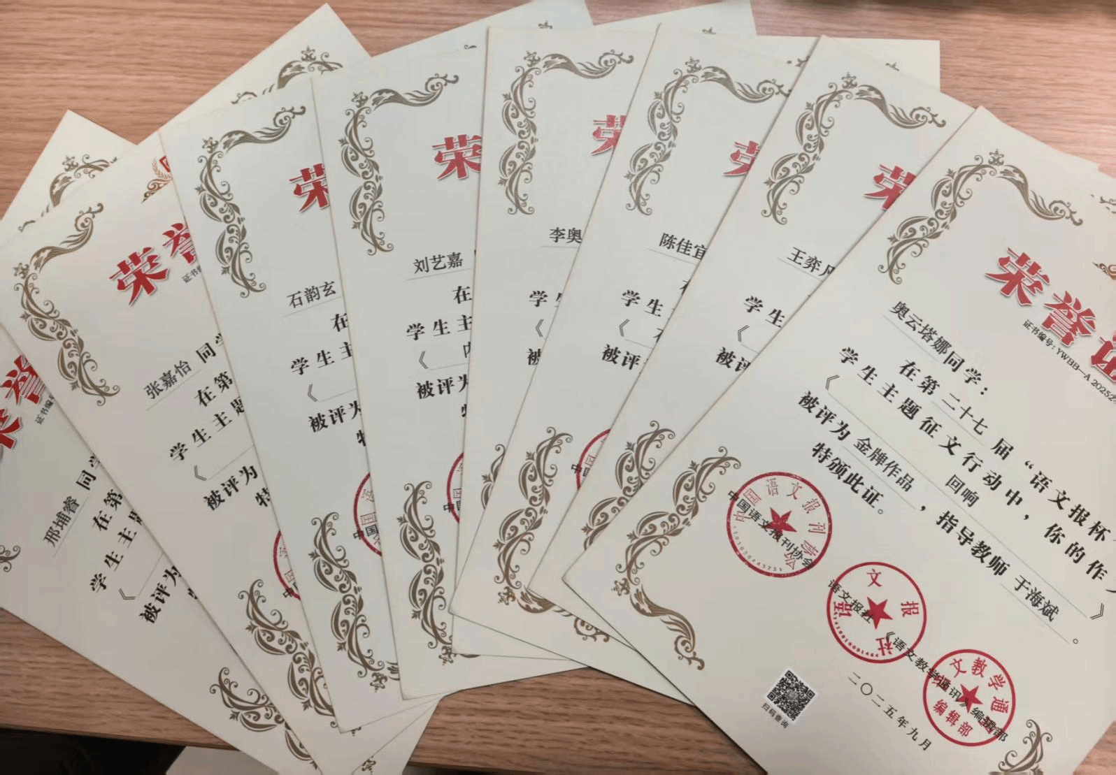 当青春的笔触遇上时代的命题,文字便有了直抵人心的力量。近日,2025年第二十七届“语文报杯”中小学生主题征文行动获奖名单揭晓,我校高二、高三学生喜获佳绩,用笔墨书写初心,以佳作彰显担当。