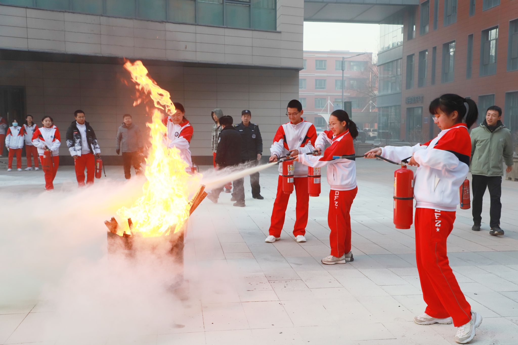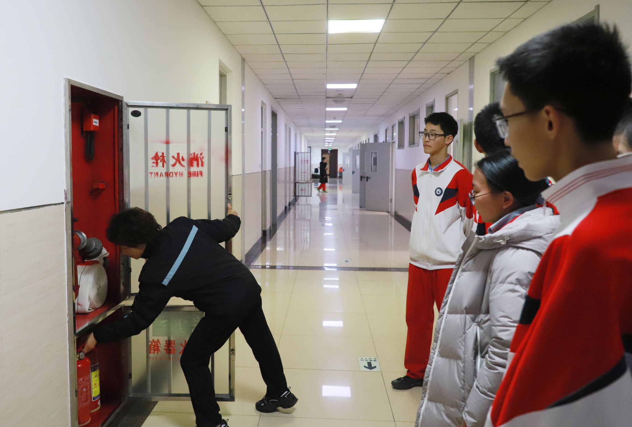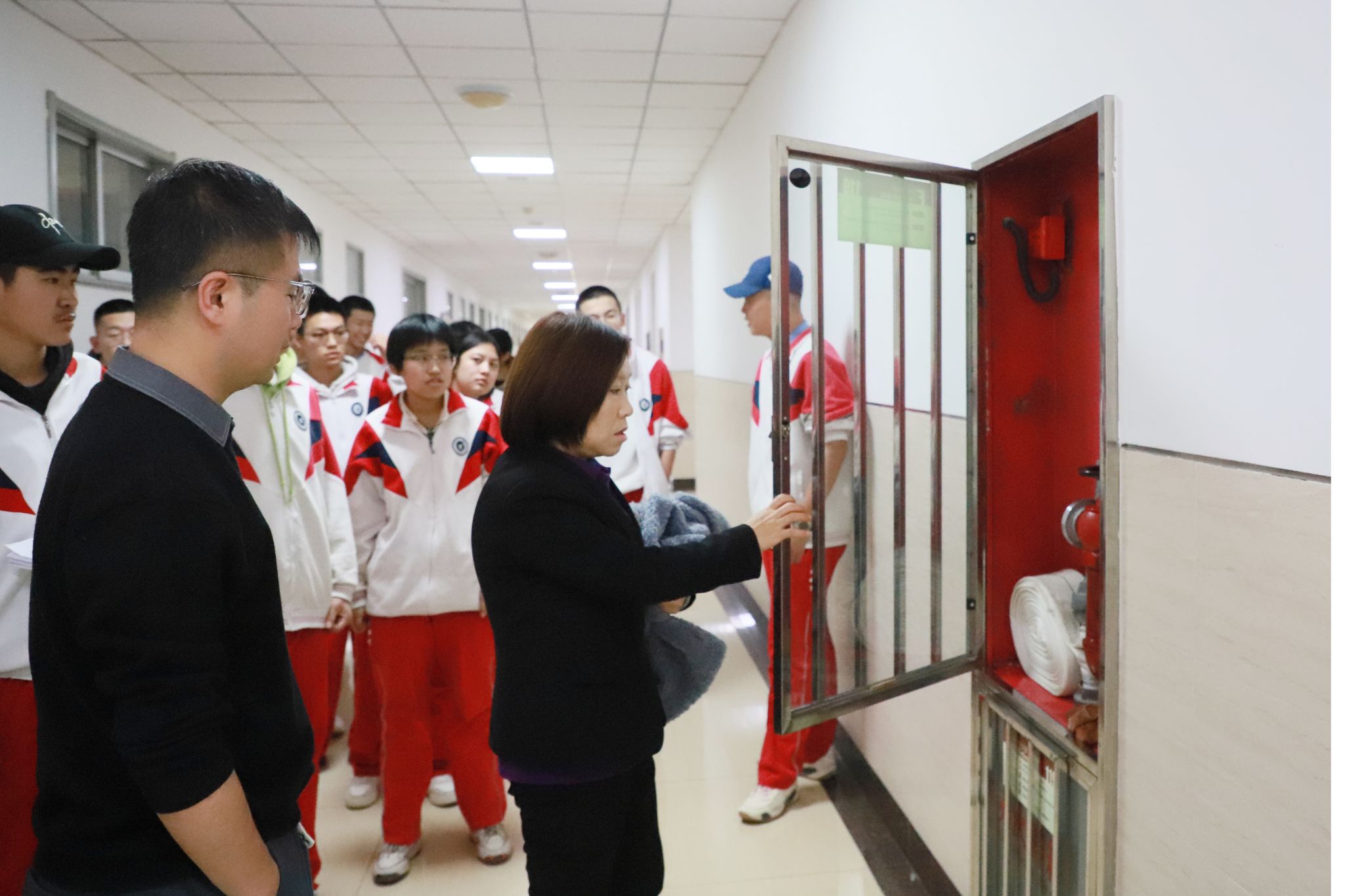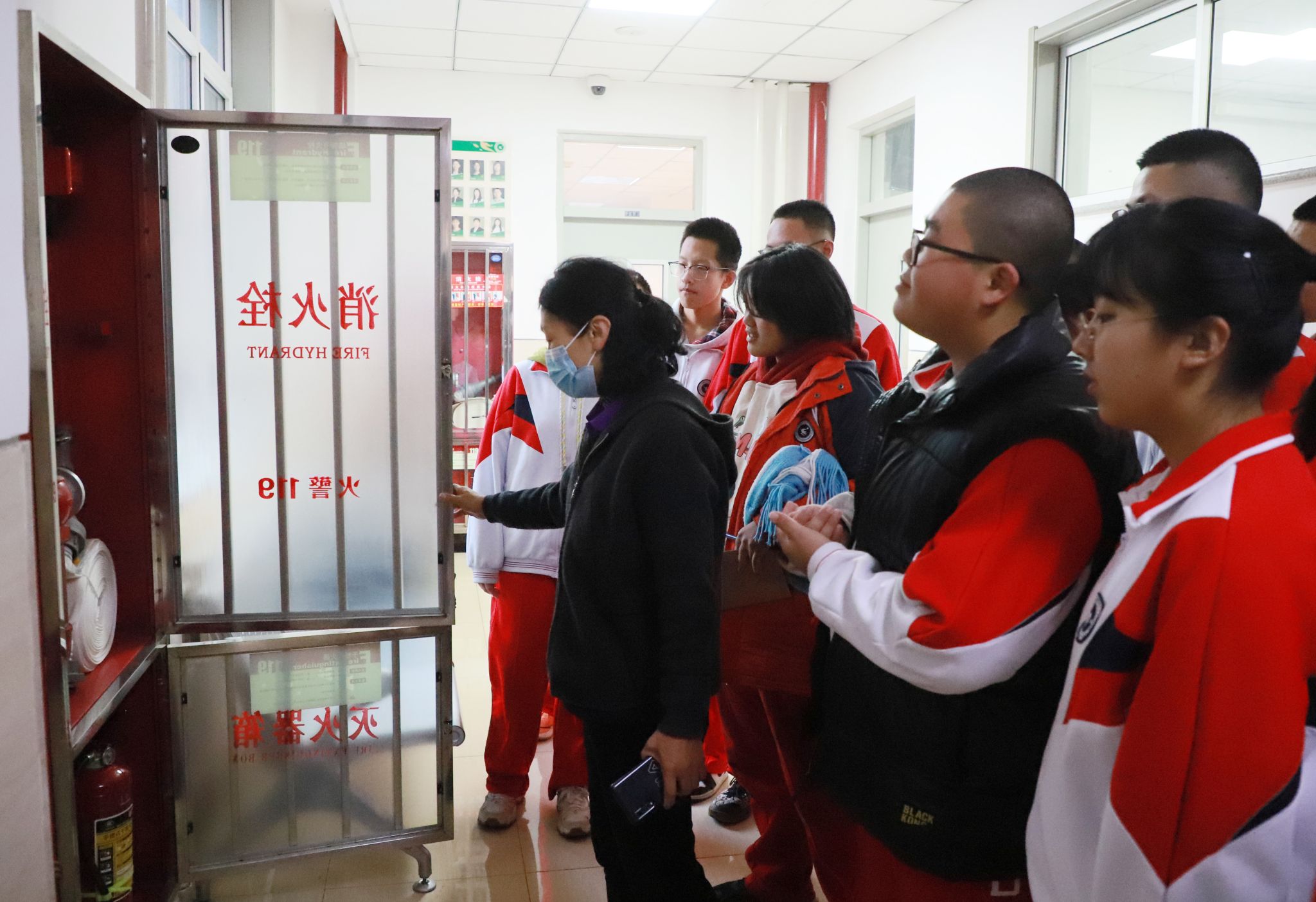 12月8日,学校组织物业工作人员,引导各班消防安全员及各年级副主任在对应引路起点集合,逐一熟悉辖区内消防栓与灭火器的具体位置,明确要求各年级牵头掌握所在区域全部灭火设施设备分布;同时,各班级通过消防安全主题班会,向全体学生详细告知就近消防安全设施的位置,确保设施知晓率全覆盖。