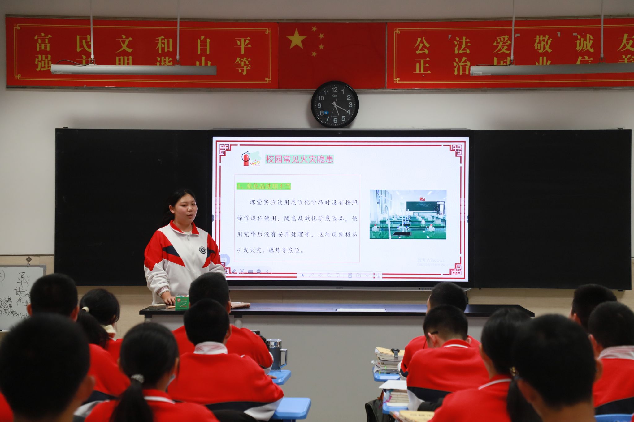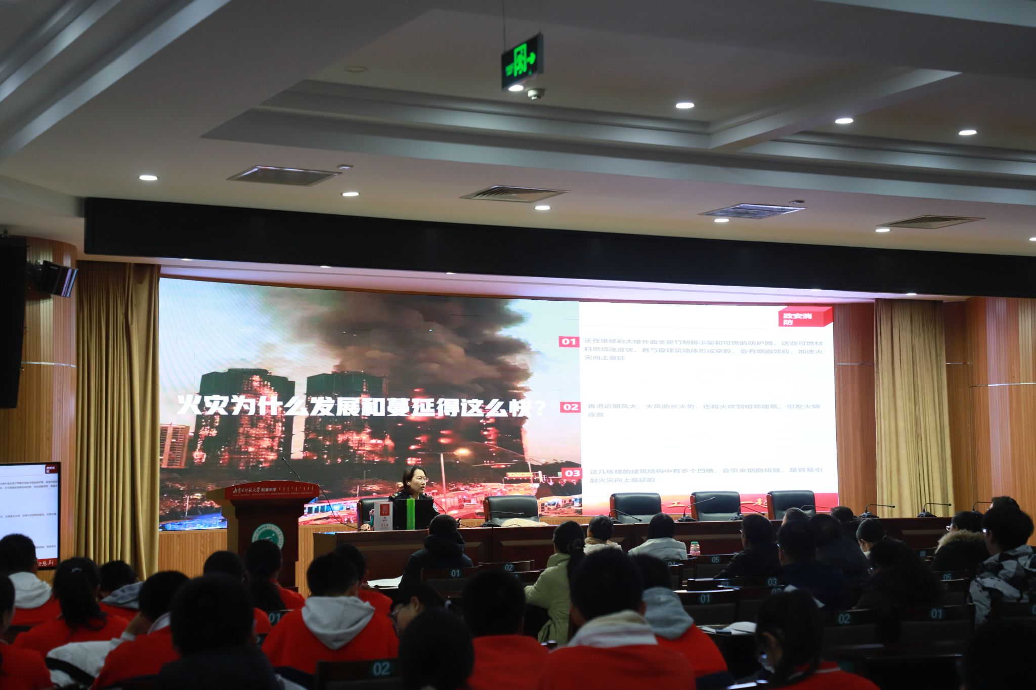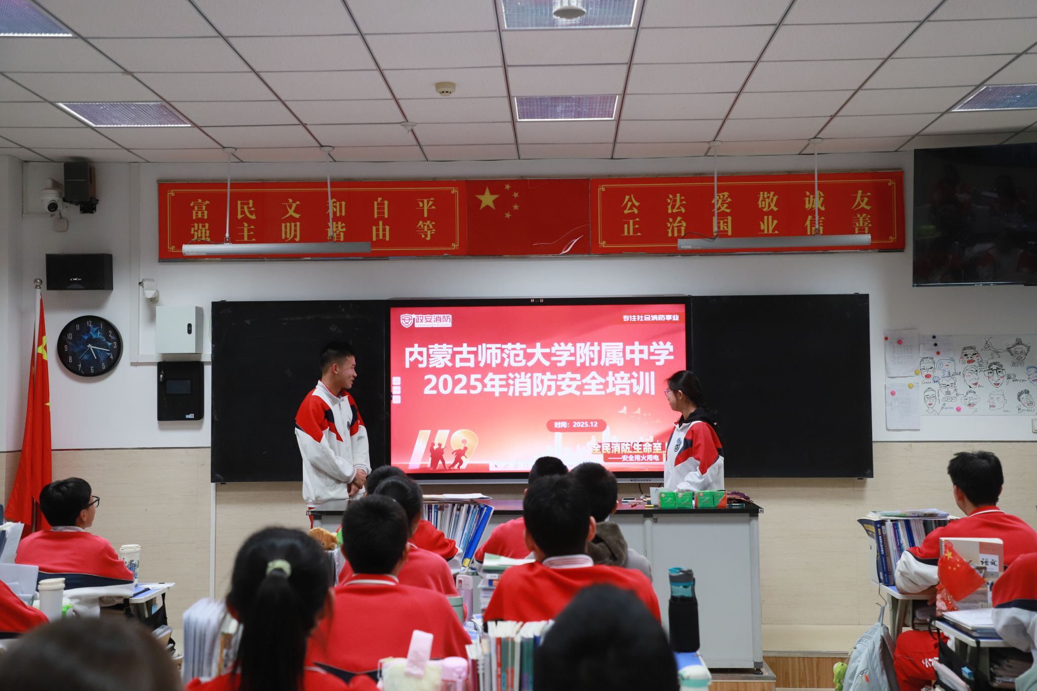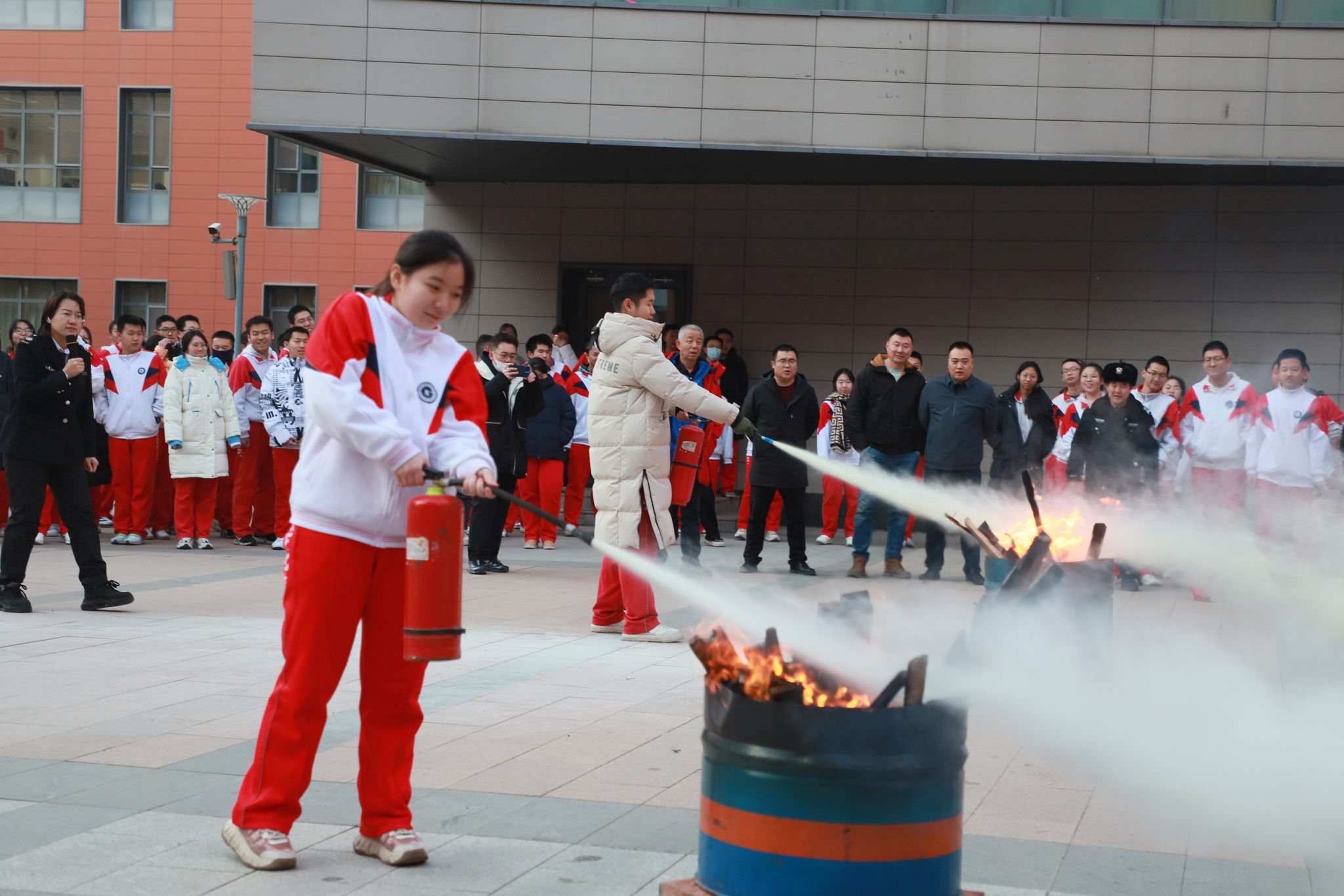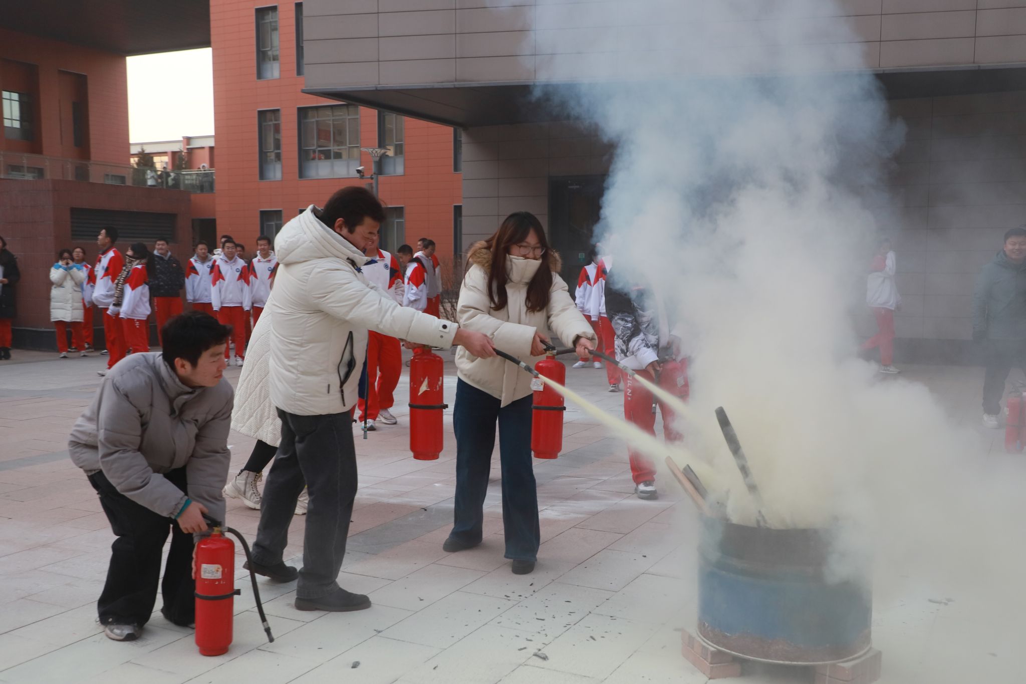 12月8日,学校组织物业工作人员,引导各班消防安全员及各年级副主任在对应引路起点集合,逐一熟悉辖区内消防栓与灭火器的具体位置,明确要求各年级牵头掌握所在区域全部灭火设施设备分布;同时,各班级通过消防安全主题班会,向全体学生详细告知就近消防安全设施的位置,确保设施知晓率全覆盖。