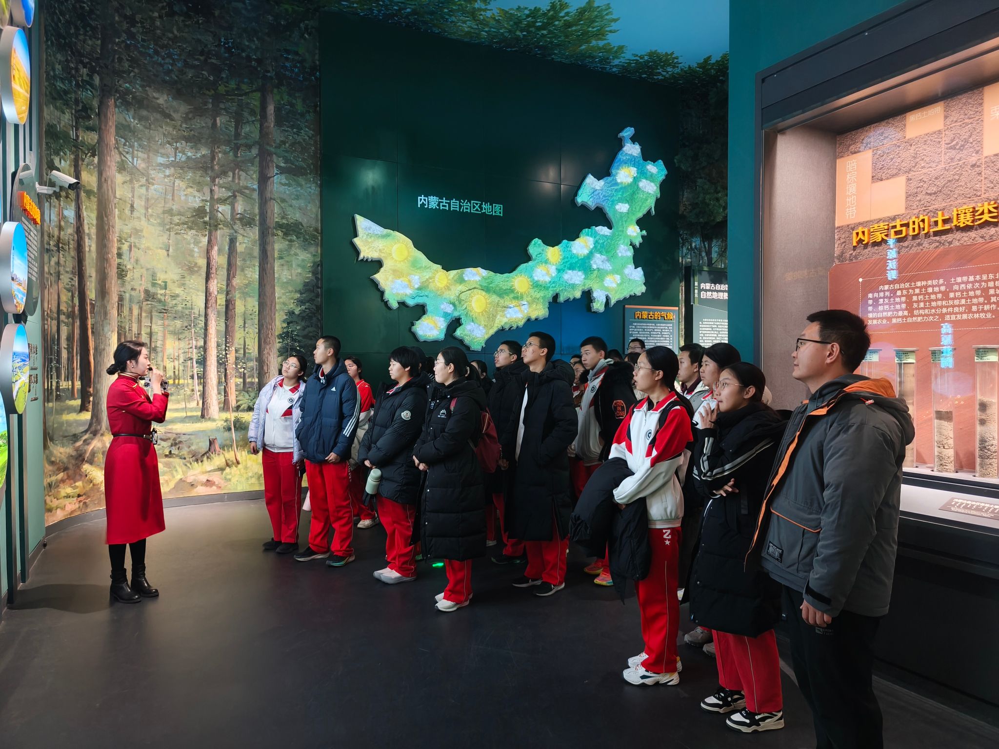 冬日北疆,朔风微拂却挡不住探索的热忱。12月3日,我校校本选修课《畅游中国,行知地理》带领学子走进内蒙古博物院,在“亮丽内蒙古——内蒙古多姿多彩的生态画卷”与“古塞同风——长城及长城地带的文化交融”两大主题场馆中,开启了一场“行走中的地理课”,让课本知识与文物遗存、生态实景深度对话。