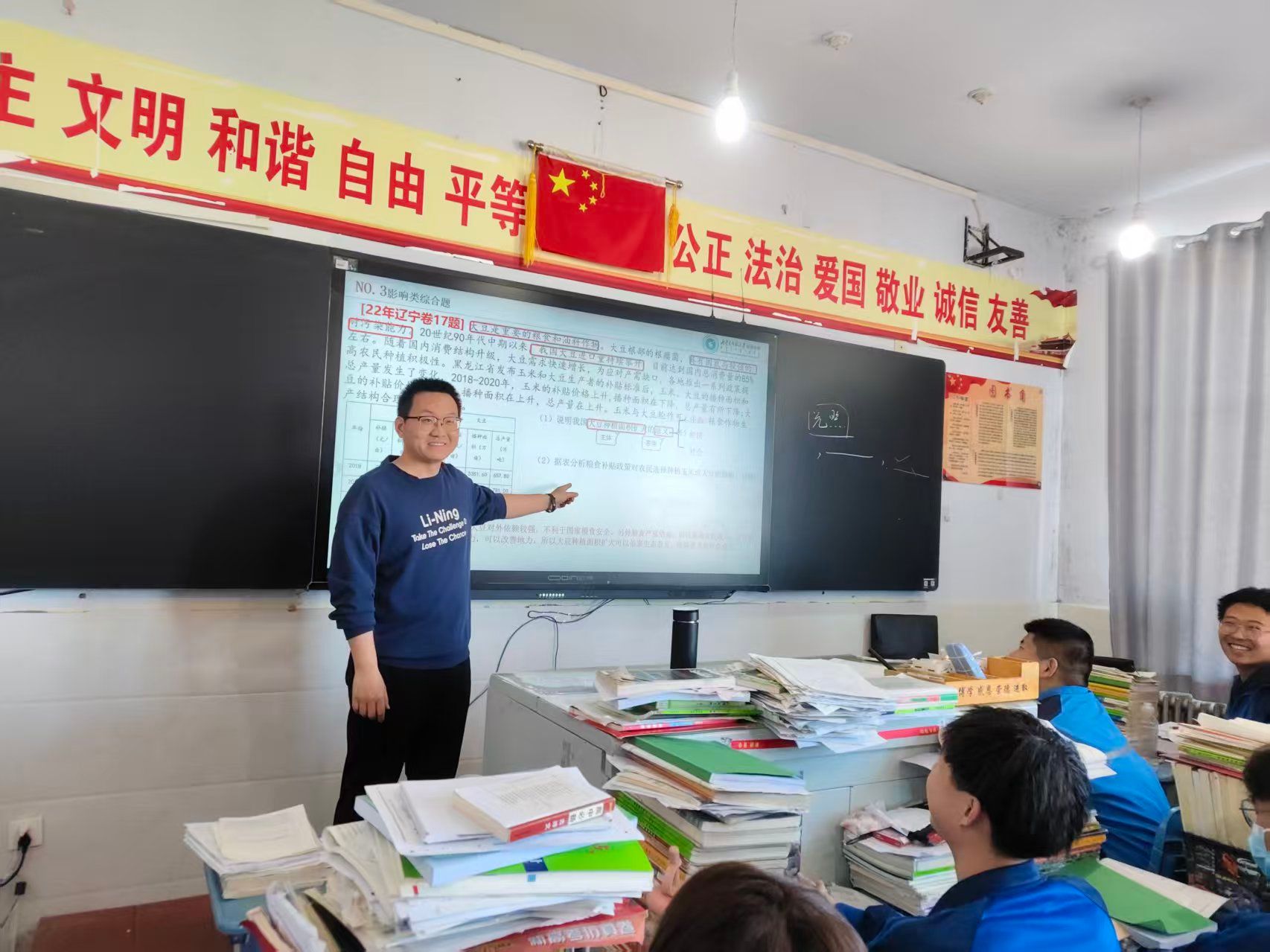 初到化德县一中,付彪便感受到了学校师资紧缺的压力,他主动扛起教学重任,在高一年级秋季学期接手了6个班级的地理教学工作,每周上18节课,同时负责3节晚自习的辅导工作。高强度的工作节奏里,他始终保持着饱满的热情,在课堂上循循善诱,用生动的案例和通俗地讲解抽象难点,在课后耐心解答学生的每一个疑问,主动关心学习困难的学生,帮他们梳理知识体系、树立学习信心。在他的带动下,学生们学习地理的积极性明显提高,课堂氛围愈发活跃,考试成绩也有了显著提升。