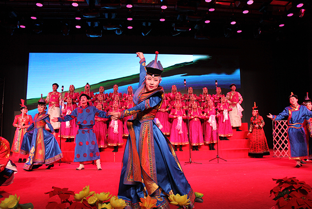 来自蒙古语授课部、汉语授课部、国际部高二年级和蒙古语授课部初二年级共23个班级参加了诗歌朗诵比赛。参赛作品具有鲜明的时代性、教育性、民族性、艺术性。内容积极向上,形式丰富多彩,融合了情景剧表演、器乐演奏、舞蹈等多种表演元素。漫长深重的历史,美丽动人的故事,悲壮激昂的抗争,青春飞扬的梦想,欢快悠扬的马头琴声……精彩彩纷呈的表演让现场观众尽享视听盛宴。特别值得一提的是,本届诗歌朗诵比赛要求各参赛班级邀请任课老师参与表演,师生同台表演增添了欢乐的气氛,也增进了师生的友谊。老师们精彩的表演,让历时四个多小时的演出高潮迭起,令人回味无穷。