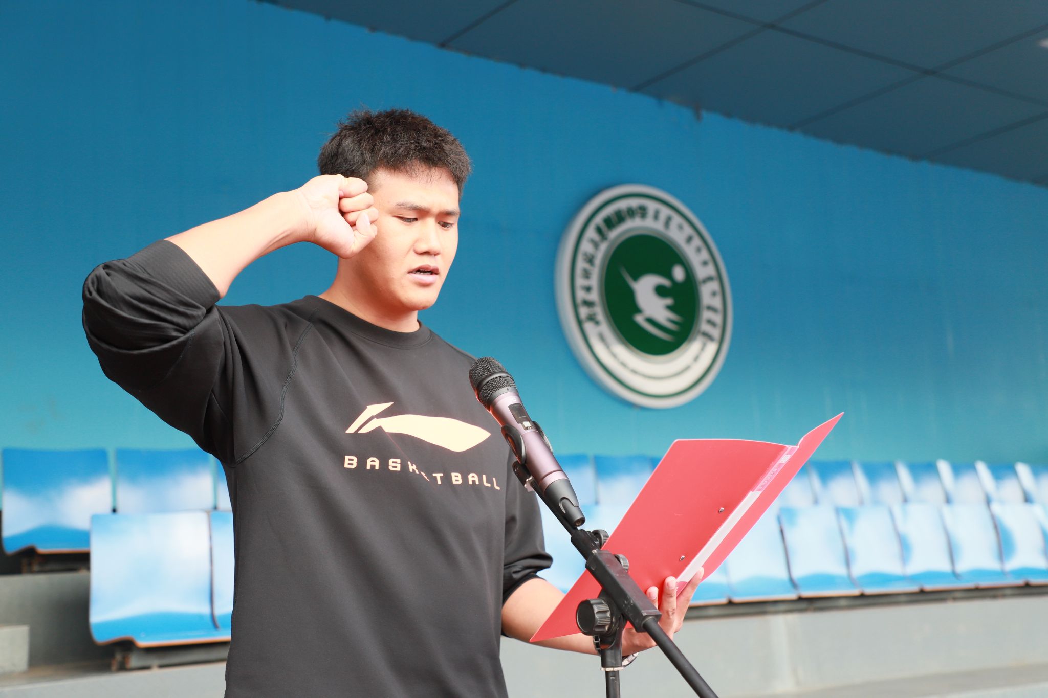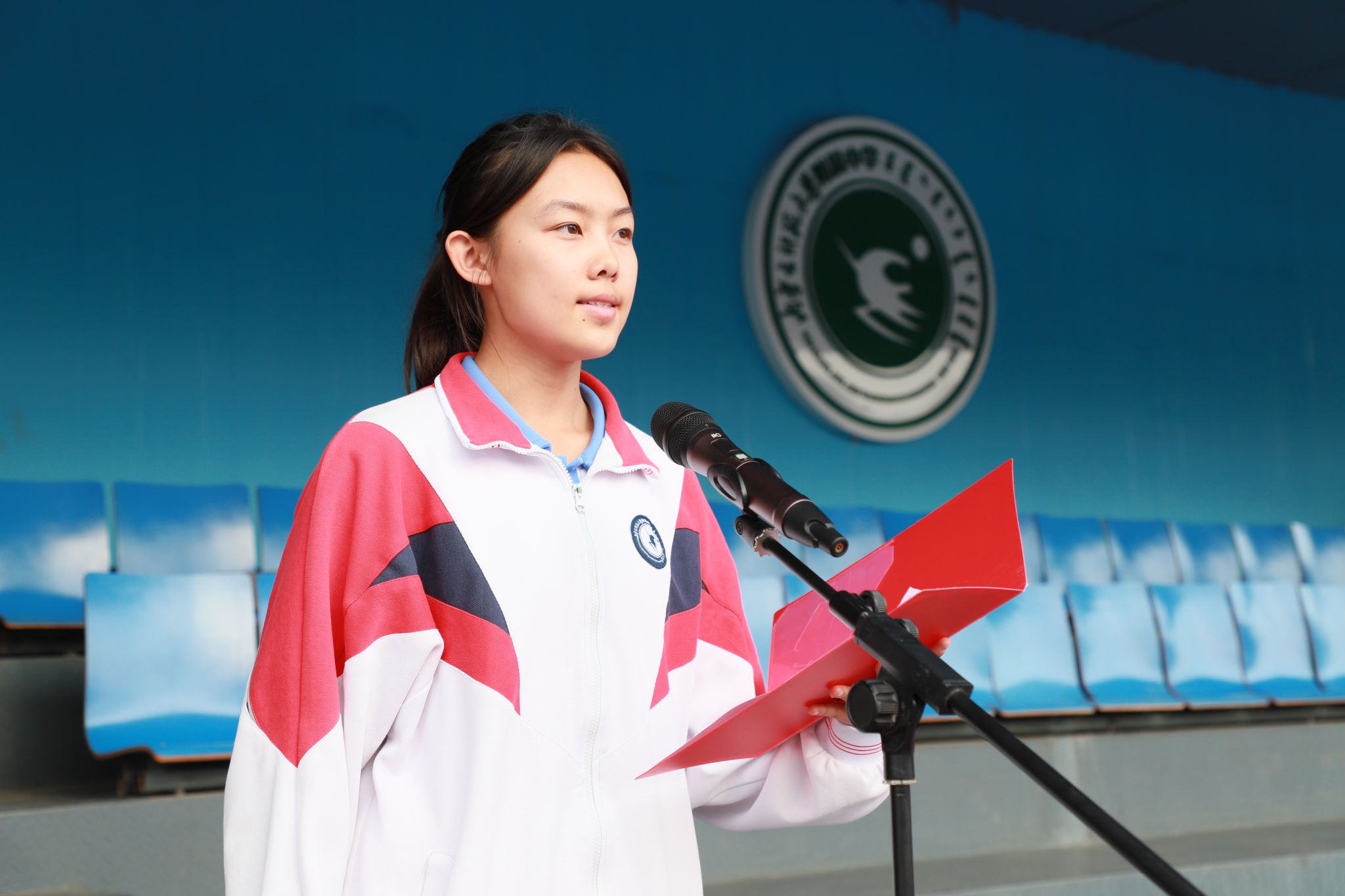 在运动员代表、高三7班的马伊睿同学,以及裁判员代表左鑫旺老师分别进行庄严宣誓之后,大会宣读了《精神文明班集体评比办法》,着重指出将综合考评各班级在比赛期间于组织纪律、精神风貌、卫生维护和宣传投稿等方面的表现。