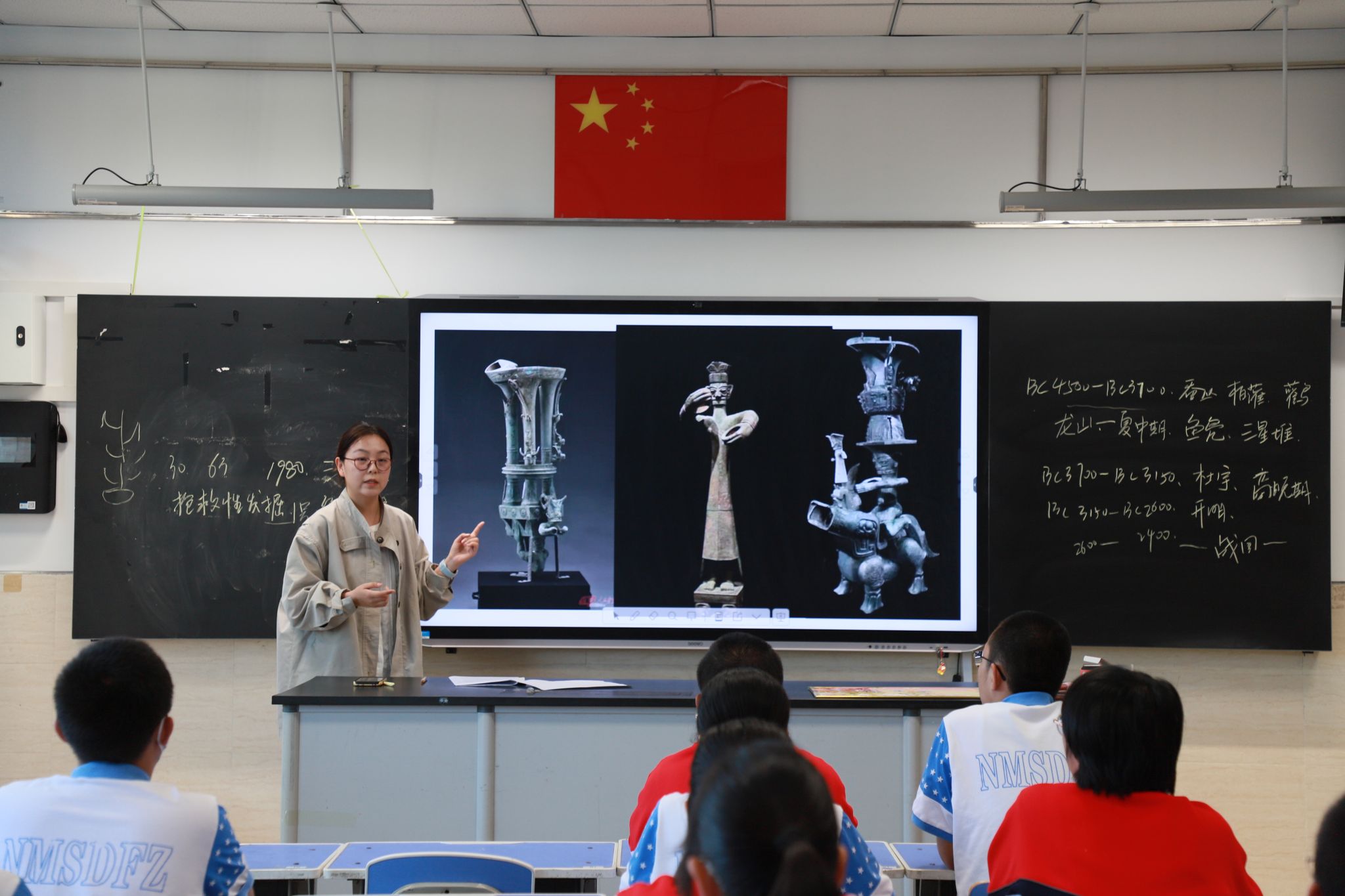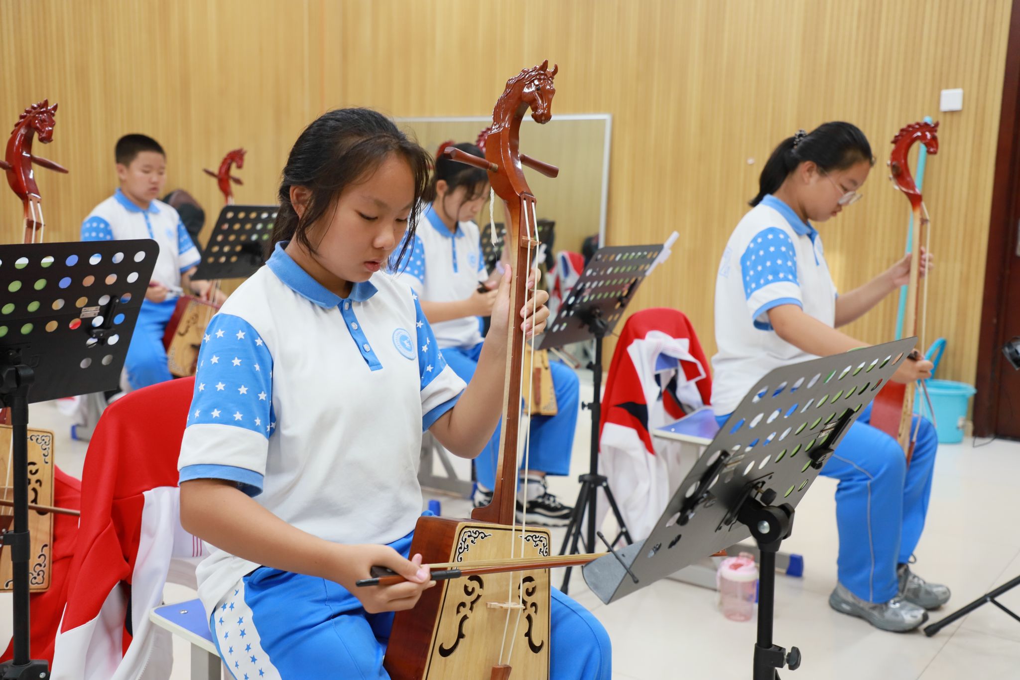 美育中心的马头琴教室,宝音和希格老师的弓弦、蒙古族音乐的韵律和学生们的赞赏目光碰撞出火花;在“中医文化启蒙”课堂,王磊老师带领大家辨识草药标本。文化的传承,在课堂中变得鲜活。