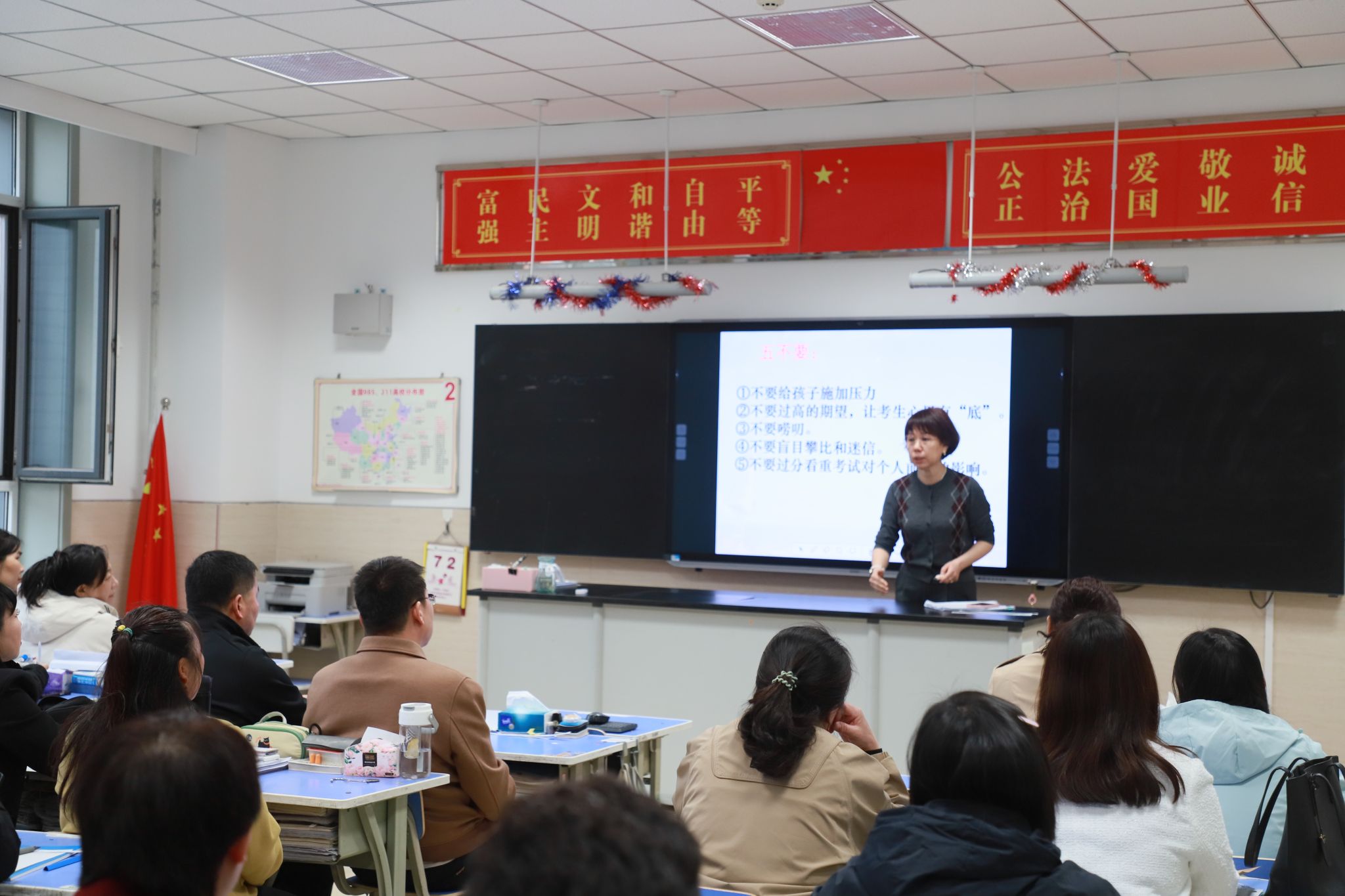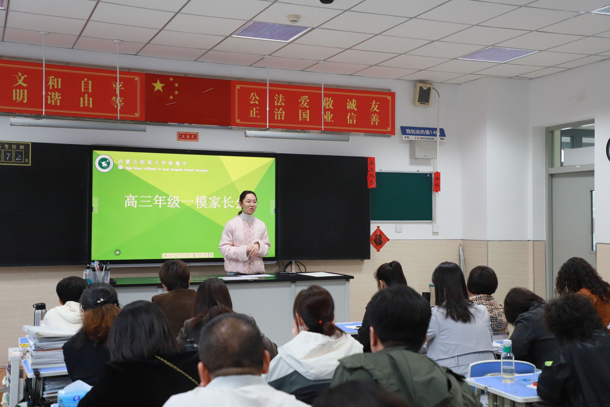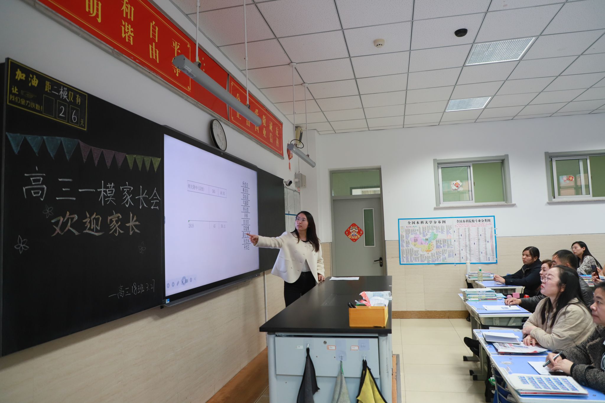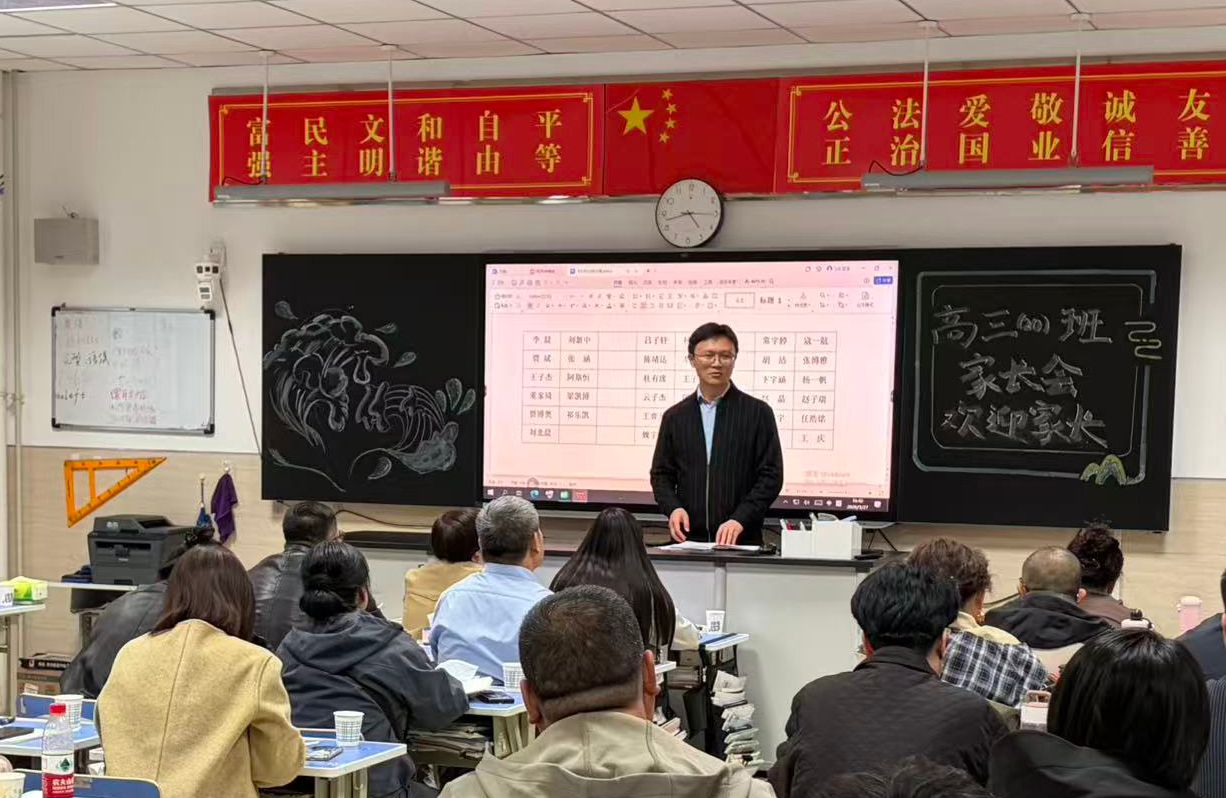 家长会以班级为单位开展,班主任基于对学生日常学习生活的细致观察,从学习状态、习惯养成到心理动态进行全方位反馈。针对一模成绩,班主任结合精准数据剖析,既肯定学生的进步,也直面问题短板,并给出后续备考的专业建议。
