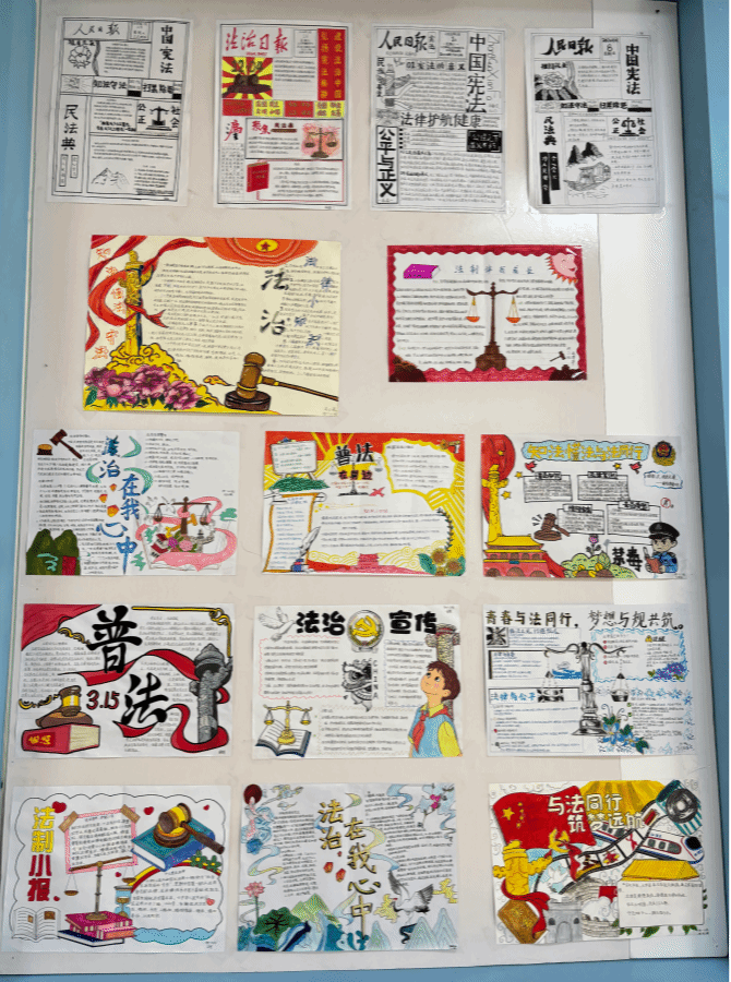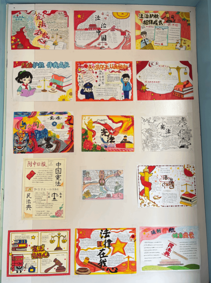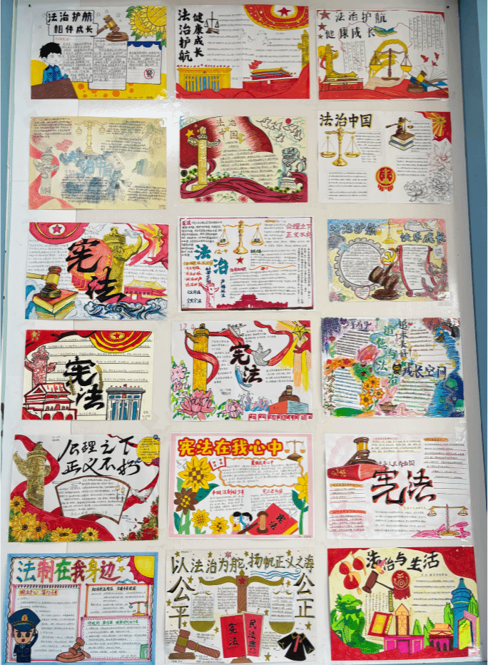 在第十一个全民国家安全教育日来临之际,为深入贯彻总体国家安全观,切实增强学生的国家安全意识与法治观念,筑牢校园安全防线,我校初一年级道法组紧抓法治宣传教育契机,组织学生开展了以“心中有法 行中有度 国中有安”为主题的法治宣传手抄报展评活动,将国家安全教育与法治教育融入校园实践,让法治精神在艺术创作中深入人心。