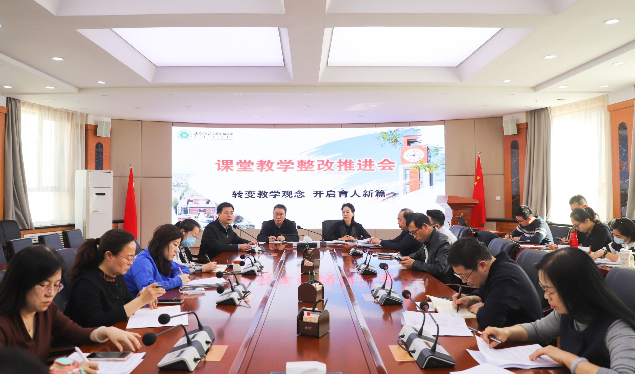 4月22日下午,内蒙古师大附中召开课堂教学改革专项工作会议。会议以“推进课堂教学改革、规范教学实施、提升育人质量”为核心主旨,通过系统分析当前教学现状、借鉴先进办学经验,明确“六有五环”高品质课堂的实施路径与具体要求。
