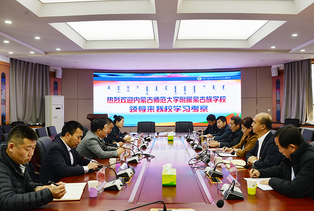 参观结束后,在逸夫教研楼三楼东会议室进行了座谈交流。内师大附属蒙校校长周全胜、副校长吉日嘎拉图、副校长斯琴、副校长董双龙、行政办公室负责人巴特尔及我校领导班子成员参加座谈会。