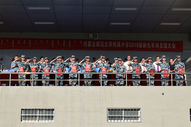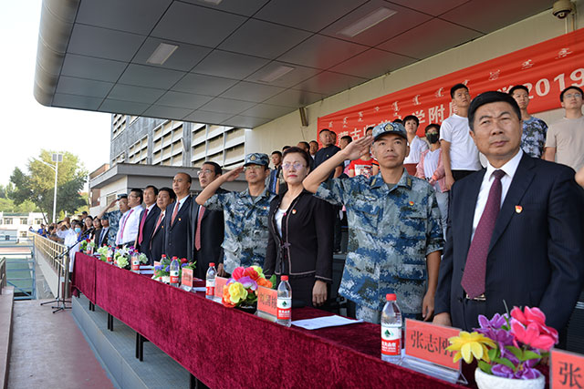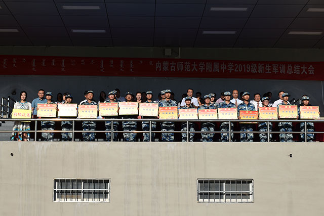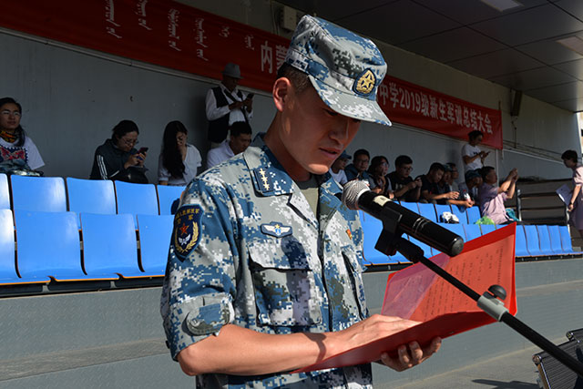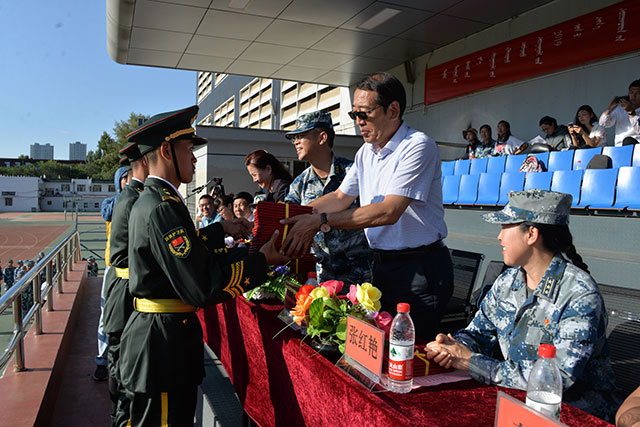 8月30日下午,在学校操场上隆重举行了2019级新生军训总结大会。出席大会的有,中国人民解放军93502部队政治工作部刘主任、我校校长张伟、党委书记乌仁图亚、党委副书记副校长张志刚、副校长苏猛、副校长付金泉及部分环节干部。