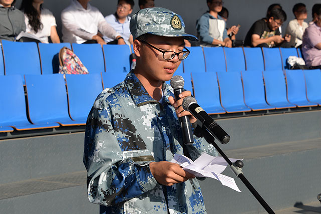 2019级新生代表高一(22)班王浩林发言,他讲到军训是我们成长的阶梯,是砥砺品行的崭新课堂,更是人生宝贵的财富,经过军训的洗礼,定会以此良好开端为基础,开启师大附中学习生活的新篇章!