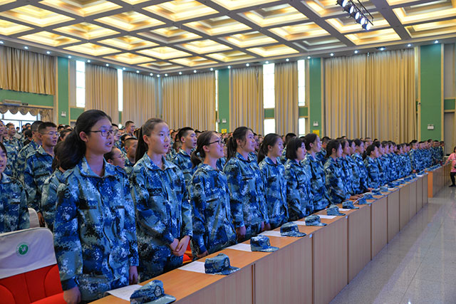 最后全体学生齐唱校歌,新生军训总结大会圆满落幕。