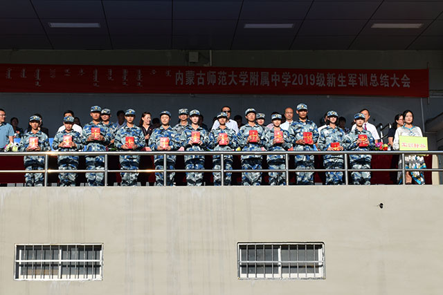 军训总结大会——校领导为军训标兵颁奖