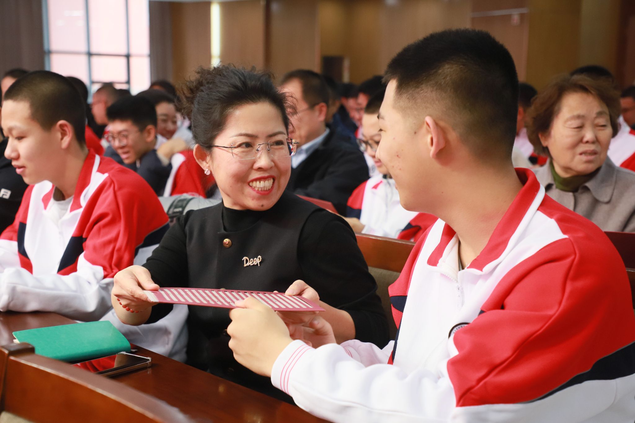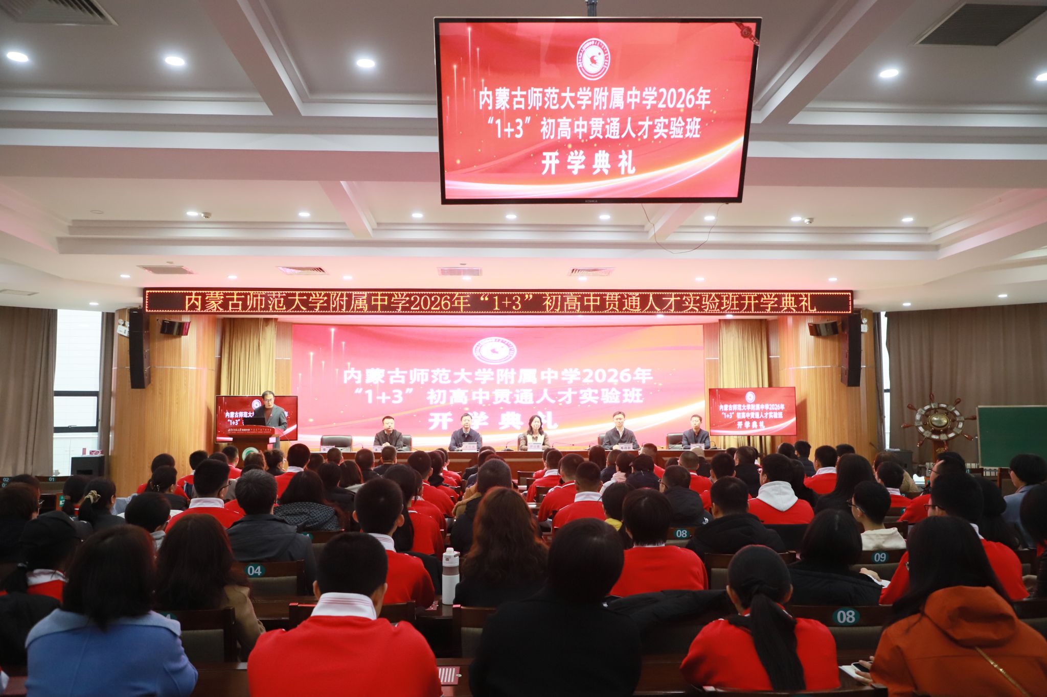 开学典礼在温馨的录取通知书颁发仪式中拉开帷幕。家长们亲手将录取通知书郑重递交到孩子手中,并送上真挚寄语;学子们以感恩之言回应父母的陪伴与付出。一纸通知书,是成长的凭证,更是未来的入场券,标志着同学们正式成为附中人,踏上初高中贯通培养的成长之路。随后,全场共同聆听内蒙古师范大学附属中学校歌,新生与家长在歌声中感受附中文化,融入附中大家庭。