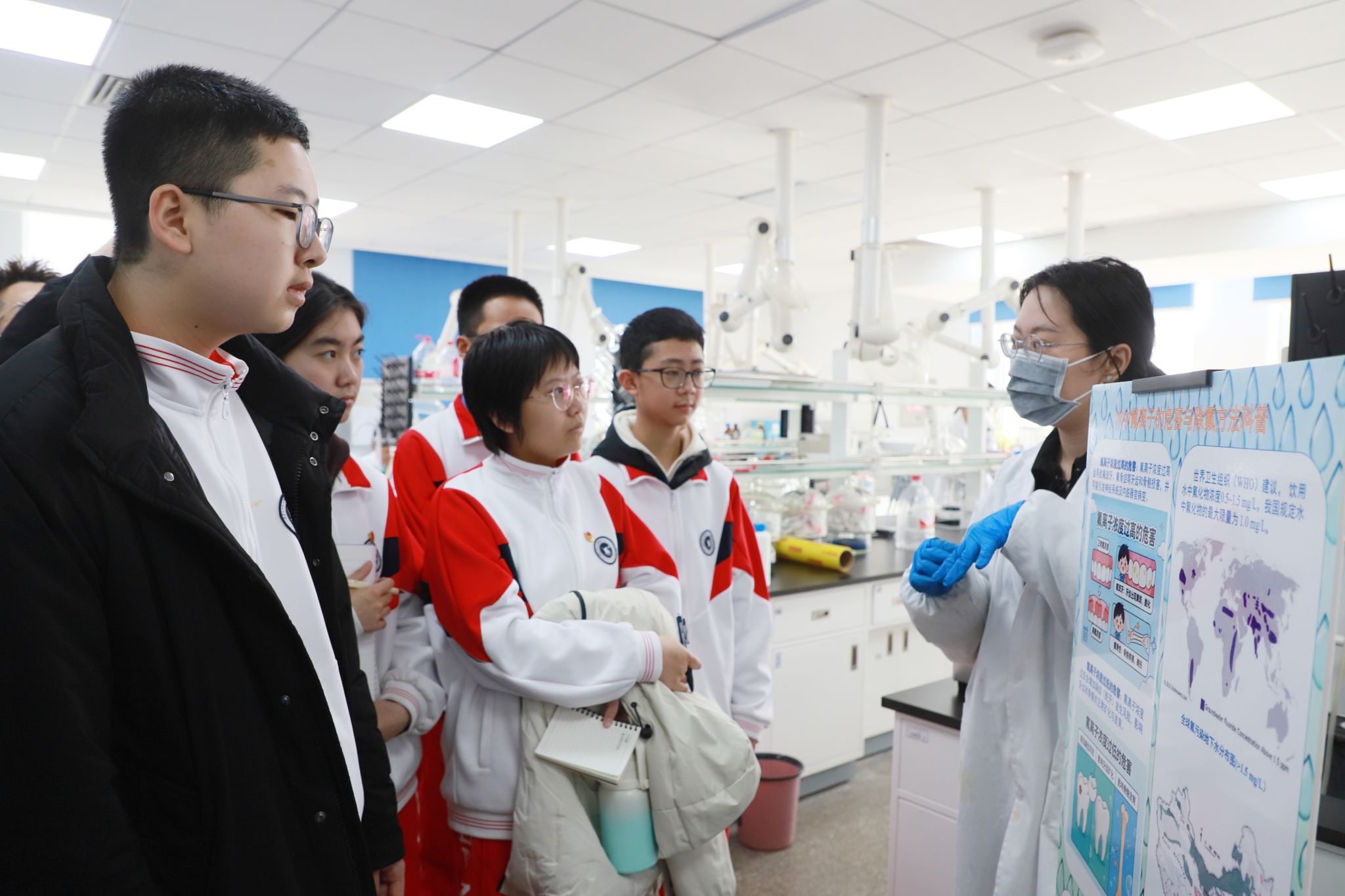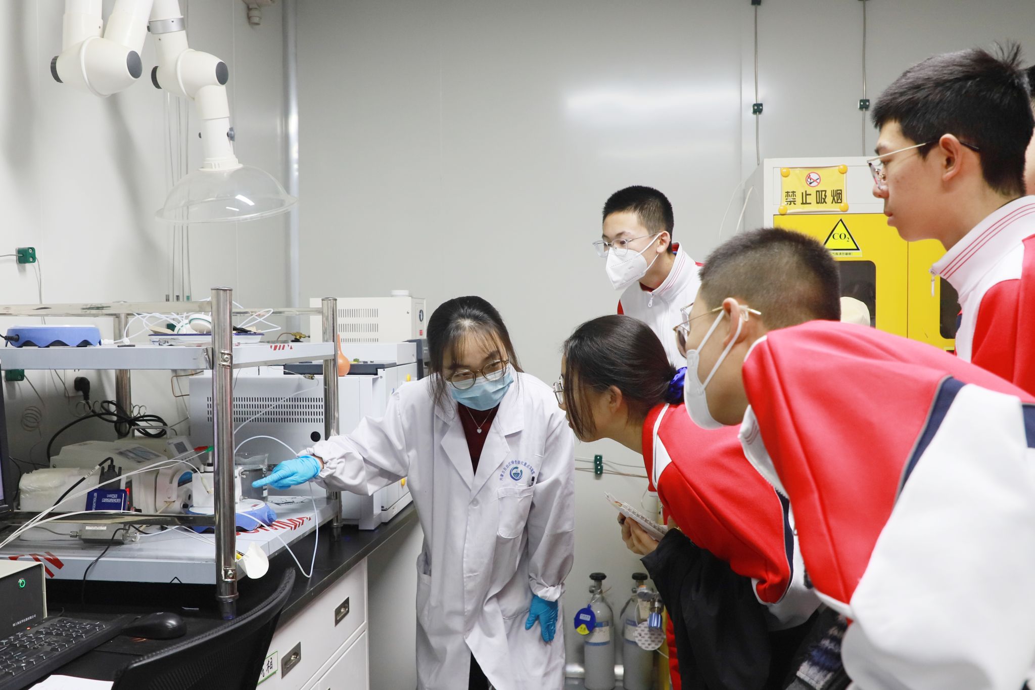 在高校实验室,同学们有序参观实验平台、精密仪器与科研场景,聆听专业教师讲解仪器原理、实验规范与安全知识,直观感受化学从理论到实践的转化过程。大家认真观察、积极提问,在互动交流中深化对化学学科的理解,激发探索未知、求真创新的科学热情。