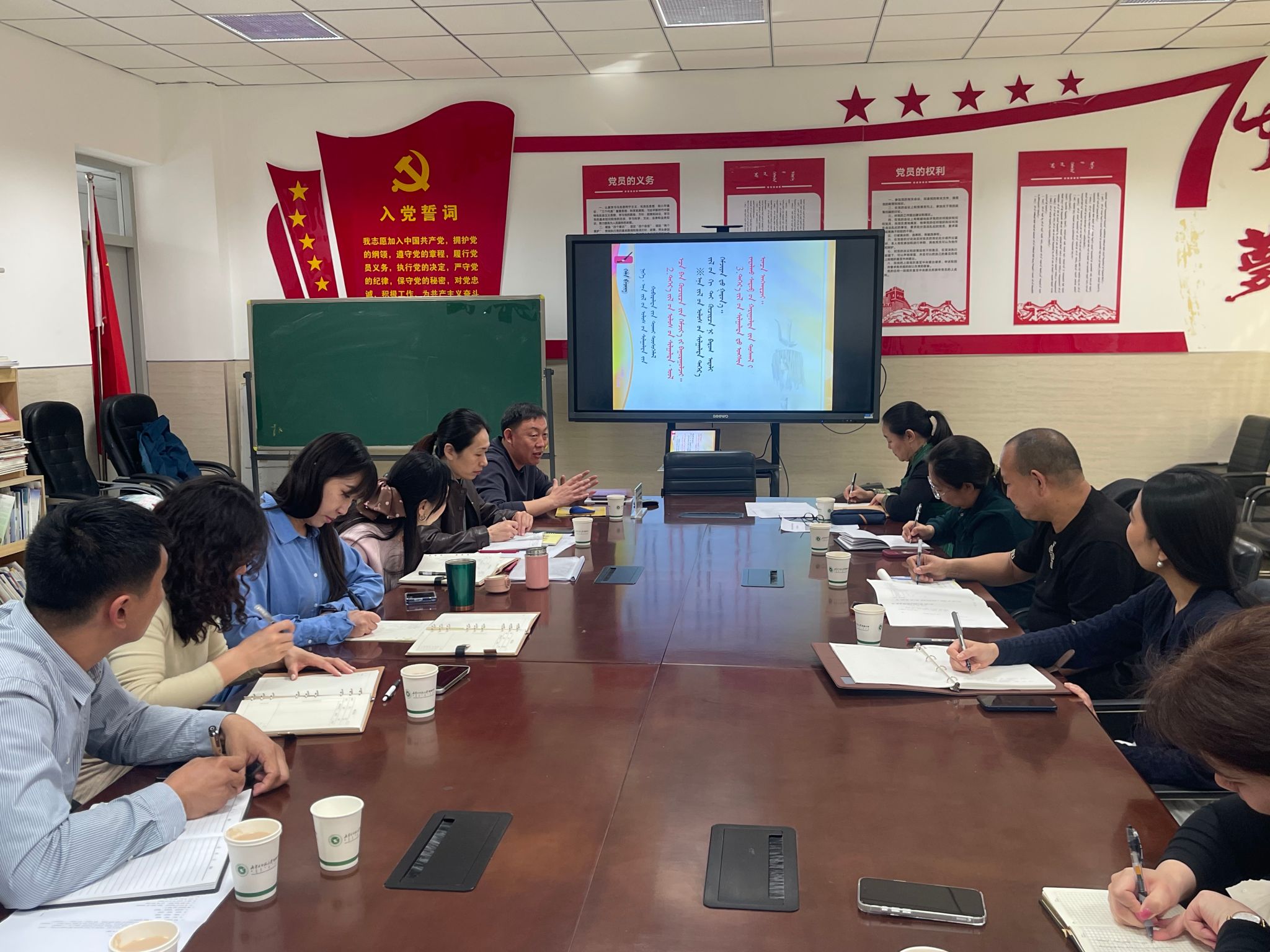 蒙古语文分会场,其萨如拉老师结合成绩数据作专题分享,从本校学情出发,精准剖析了蒙古语文一模考试中暴露的薄弱环节及下一步复习策略。